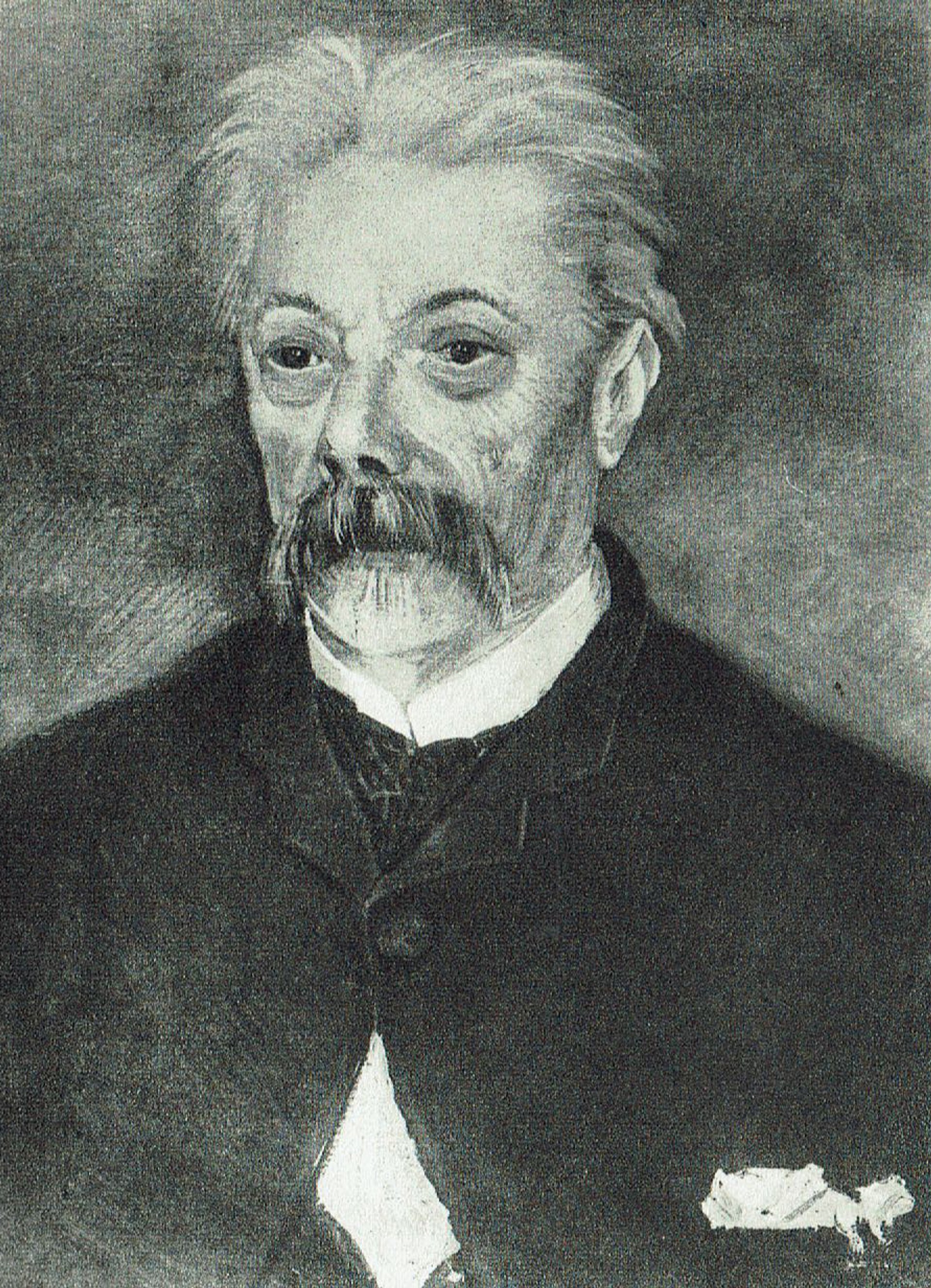 Two or three years later, in Paris, Vincent painted a portrait of a friend of his paint seller Père Julien Tanguy. He received 20 francs (then around £1). Although not conclusively identified, this is thought to be a portrait which was last recorded in 1927 and is known only from a black-and-white photograph.