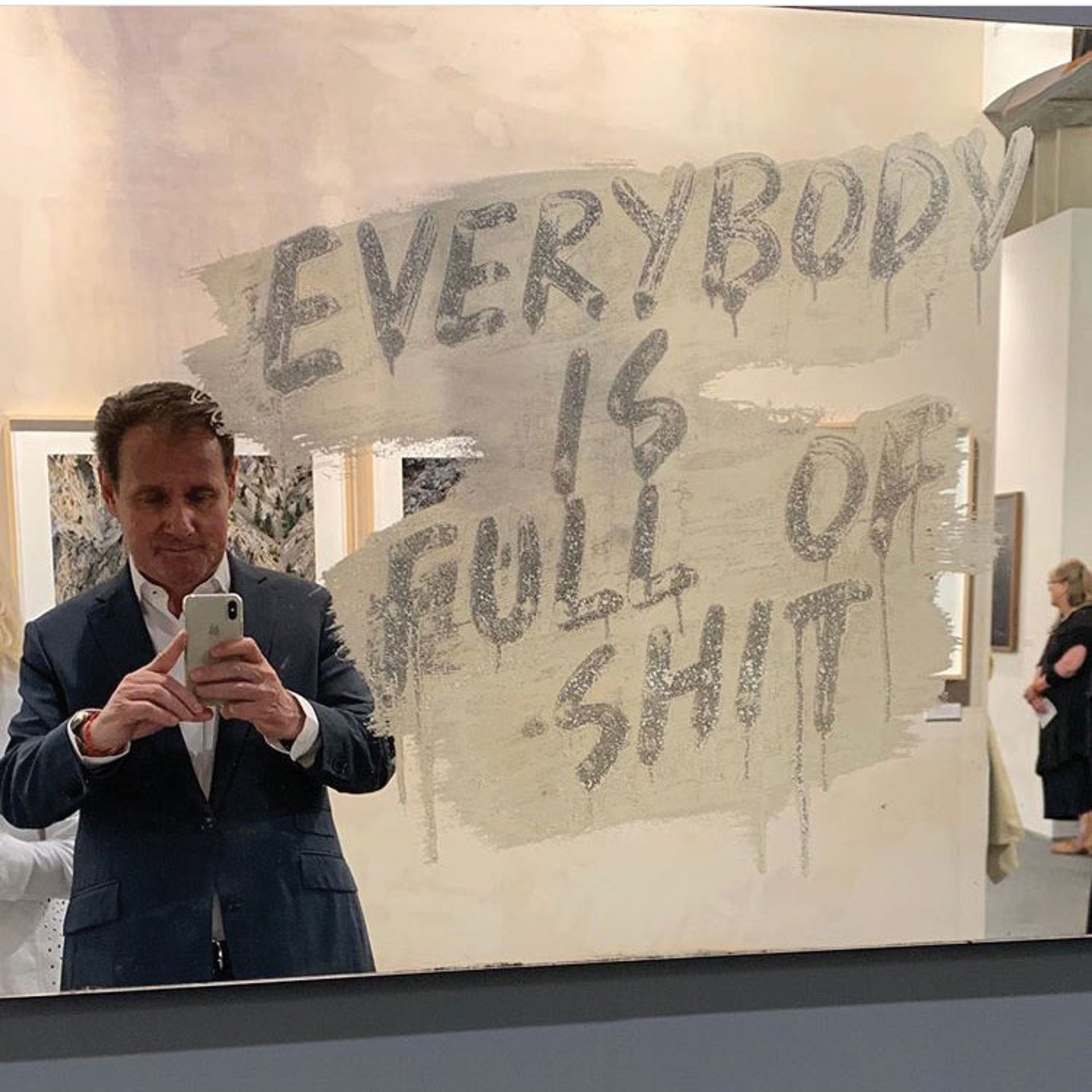 The mirrored work Everybody is Full of Shit (2018) by Mel Bochner at Two Palms gallery’s stand has become an Insta-favourite with the cheery Art Basel crowd this week for reasons we cannot fathom. One of those who posted a selfie with it was Nanne Dekking, the chairman of another fair company, Tefaf, with the caption “Not much to add…” and the hashtags #artbasel #fullofshit. People full of shit at an art fair? Surely not.