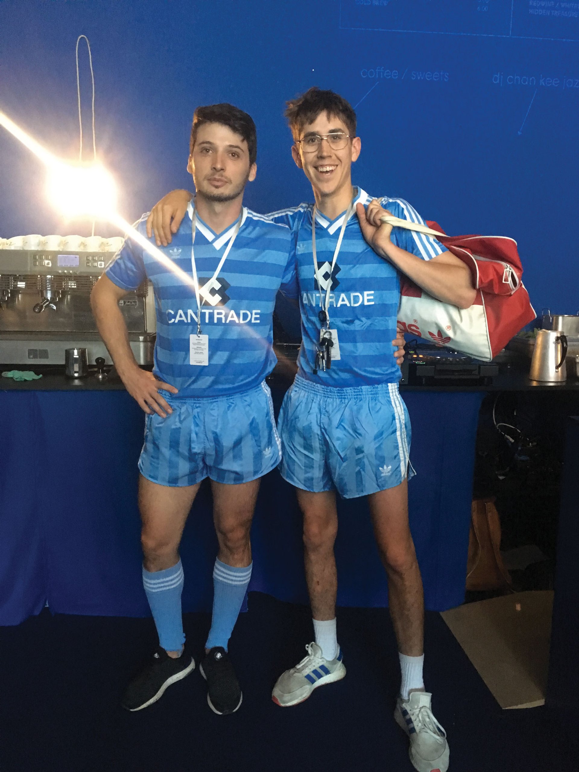 The boys in blue from Squadra Violi at Art Basel's Hidden Bar Photo: Jose da Silva