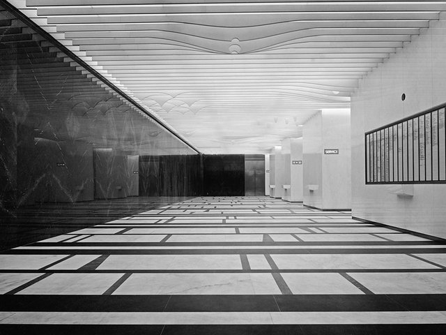 When the building opened in 1931, that client, the Irving Trust Company, used the ground floor as a banking hall. The lobby’s exotic red-gold design and use of space “may have inspired a sense of awe, but there was an intention on the part of the bank to create something that was welcoming as well”, says Mellins. “It’s walking a line between the two.”