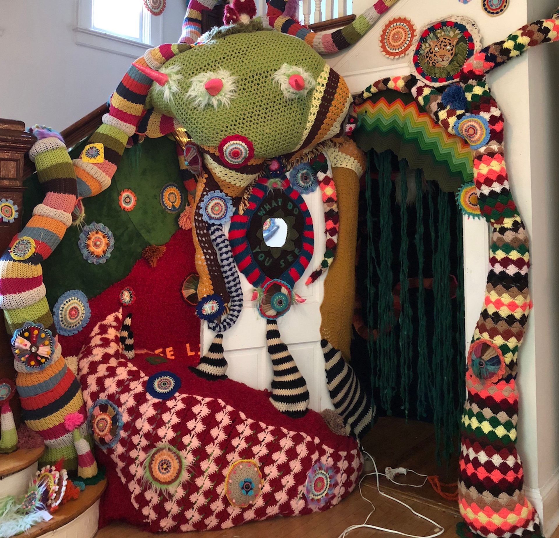 The fair features various immersive installations such as Paper Caves by the New York-based artist Samuelle Green, which comprises conically rolled pages of books covering a room from floor to ceiling, all glued into place. The work has a subtle sonic element and the aroma of old books. Another highlight is a textile installation by the mixed-media artist Jeila Gueramian that Zito describes as a “yarn-bomb installation” in which massive tentacles and snakes intertwine with colourful mandalas of yarn over bannisters and into closets, “transporting you to a fairy tale of surreal kitsch”.