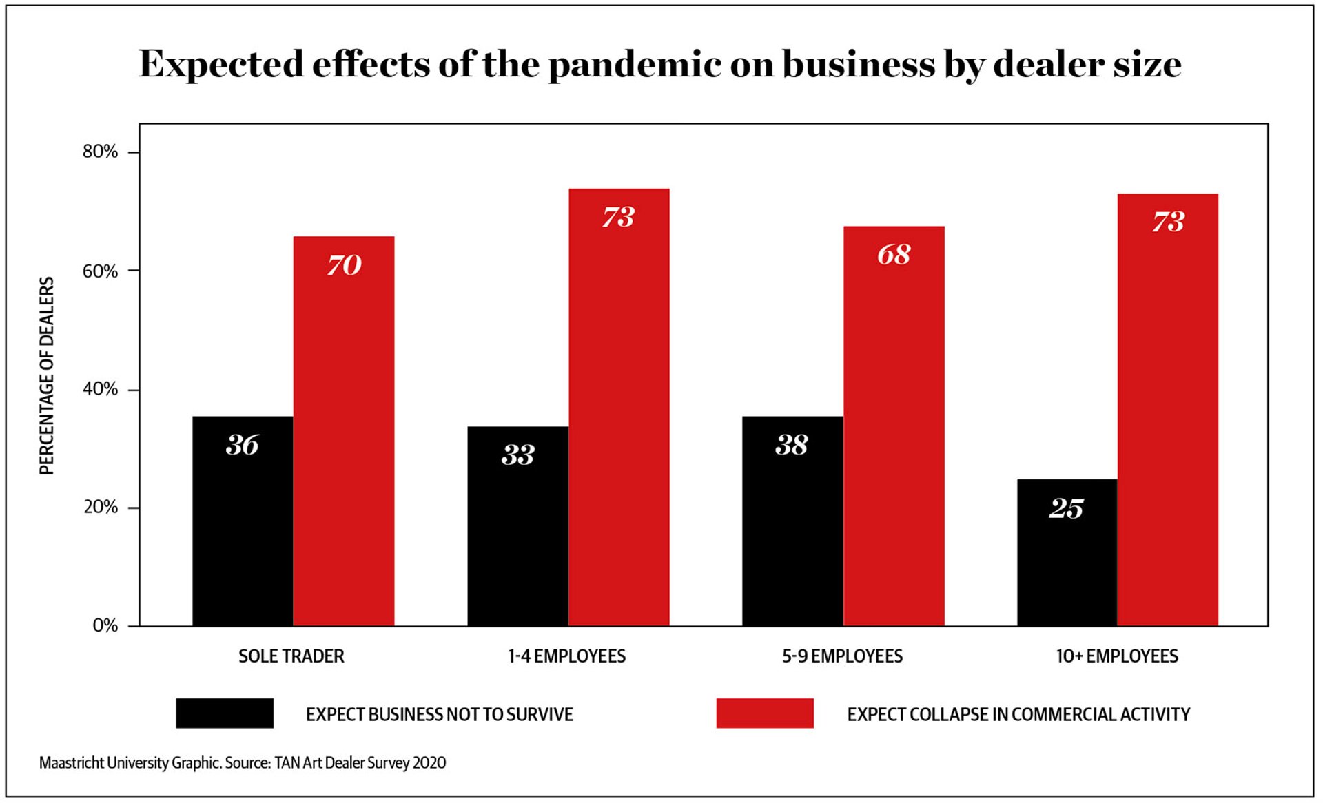 UK dealers predict the highest drop in their commerical activity © The Art Newspaper/Maastricht University