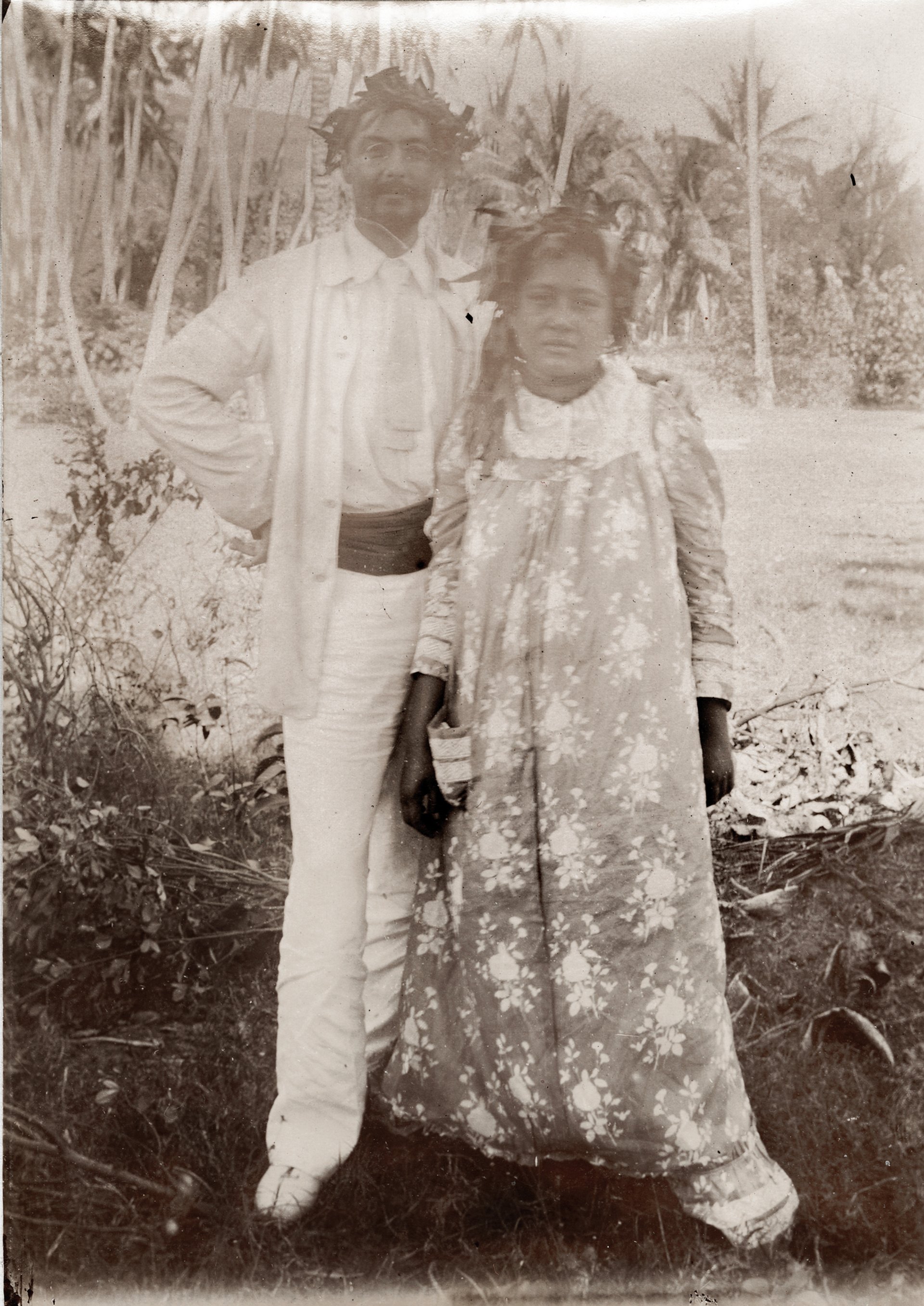 Identified by The Art Newspaper as Joseph Gouzer (born 1854, died 1901), he appears in the Blau album as “Docteur G”, standing intimately close to a Tahitian woman, Faona. His descendants have confirmed he is the man in the photo.
