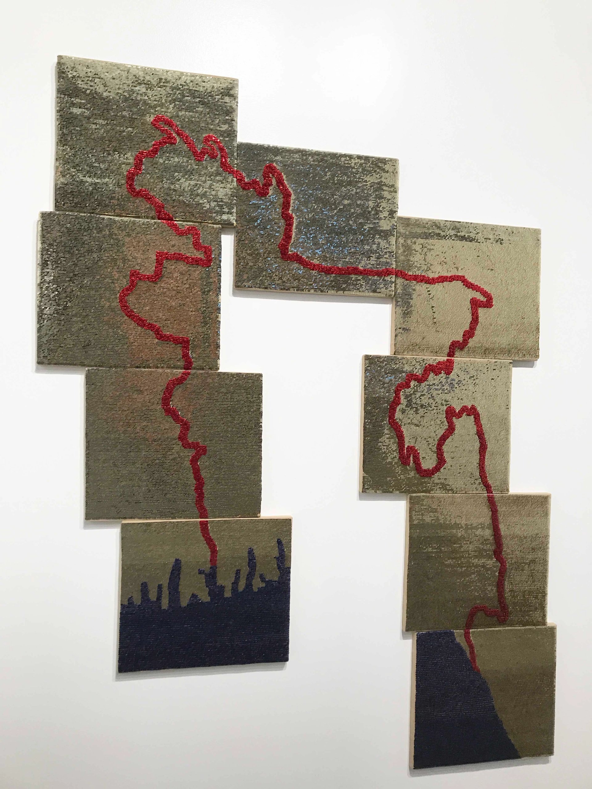 The new fair format also encompasses an impressive curated section—entitled Beyond Territory—organised by Omar Kholeif, a senior curator at the Museum of Contemporary Art in Chicago. It includes the Mumbai-based dealer Jhaveri Contemporary, a fair newcomer who is selling Bloodlines, a 1997 two-part piece comprised of sequins and thread on cloth co-created by the Mumbai artist Nalini Malani and Karachi-based Iftikhar Dadi (priced at $60,000; currently unsold).