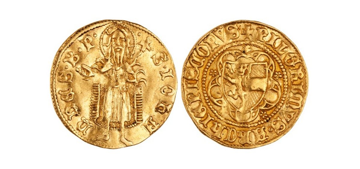 Salzburg’s mint was one of the most important in medieval Europe and originated from a special dispensation to Archbishop Hartwig granted by the German Emperor Otto III in 996. One of the coins to be returned is a silver pfennig minted in the Archbishop’s reign. Another is a 14th-century gold florin of Archbishop Pilgrim II of Salzburg, the city’s first gold coin.