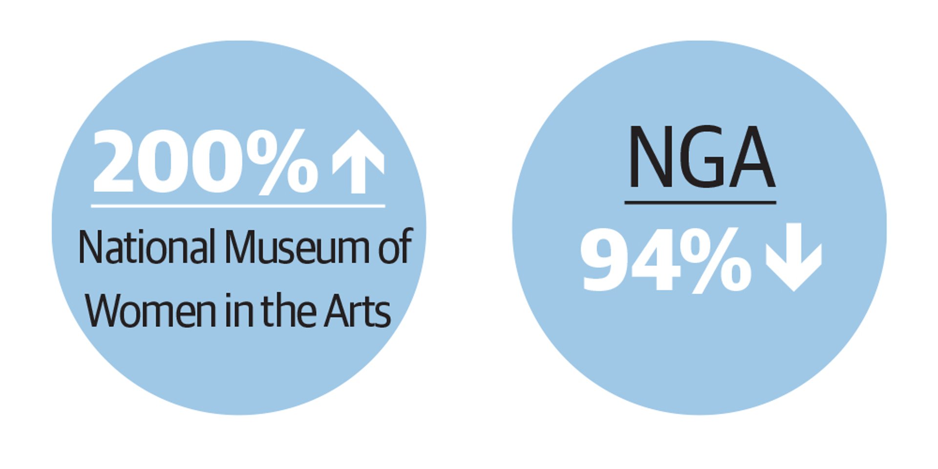 The private Kreeger Museum, which offered free entry for furloughed federal workers, saw increased attendance, though a spokeswoman noted that “numbers are up significantly over last year overall due to changes in museum hours and admission”. The Phillips Collection had a “300% increase for total admission in the first week of 2019 compared to the government shutdown period in December 2018, [while the Smithsonian and NGA were still open],” a spokeswoman says. The Phillips waived entrance fees for furloughed federal employees, leading to a 400% increase in visits by federal employees in the first week of January compared with late December.