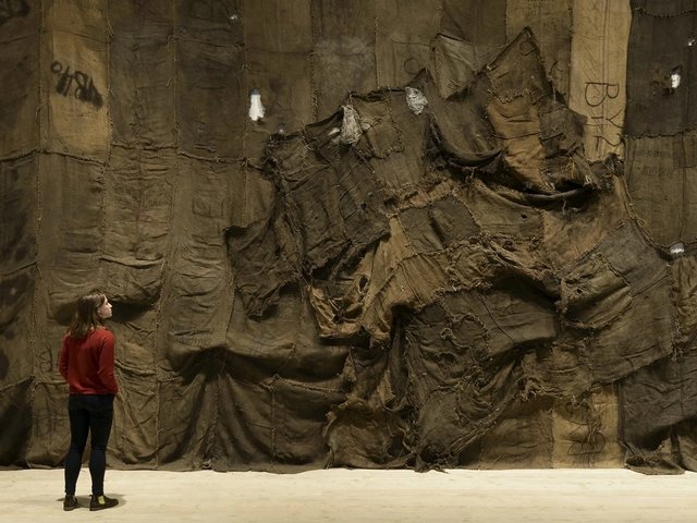 The row centred on six lots of jute sack material, which Mahama sold to Simchowitz and Ellis King for £90,000 in 2013. The artist repurposes the coarse brown sacks that are used to transport coal in Ghana, stitching them together to create tapestry-like installations.