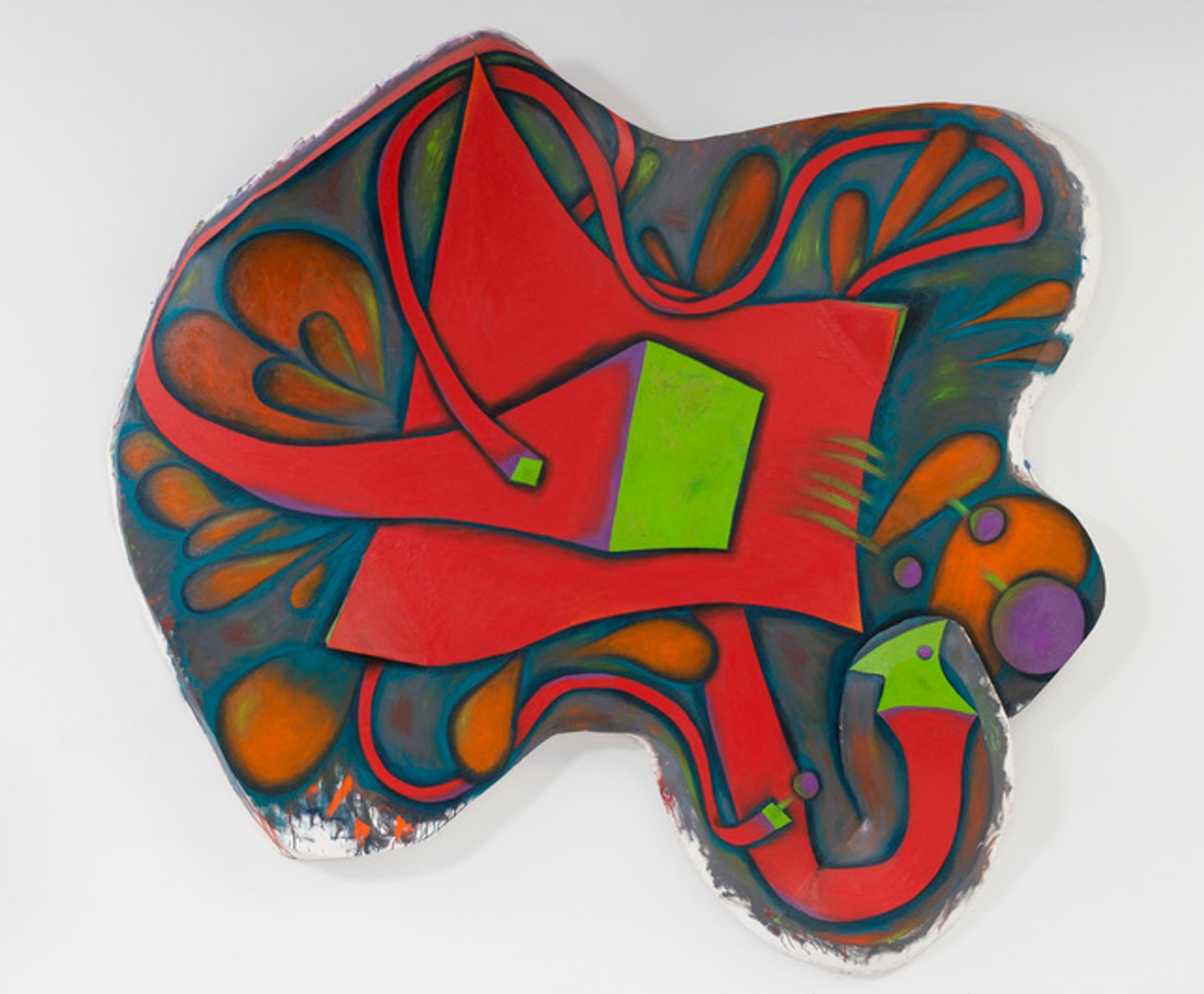 Although there are consistencies in her work—most of her pictures are shaped canvases, many have multiple parts, and rarely do the paintings have fewer than five vivid, clashing colours—Murray did not feel the need for a clear signature style or sense of progression, Baxter says.