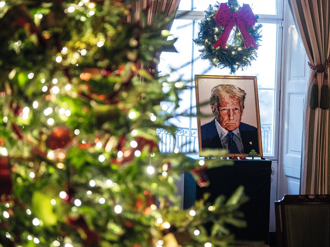 Lego-style puzzle portraits of Donald Trump and George Washington are part of the White House Christmas decorations