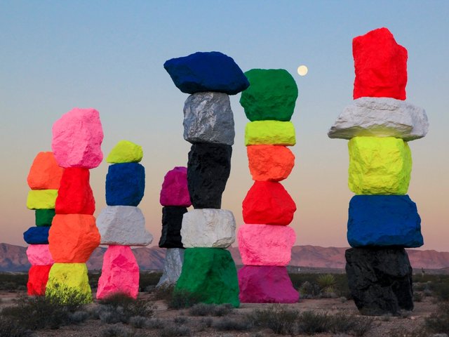 Ugo Rondinone’s day-glo desert installation Seven Magic Mountains gets a fresh coat of paint