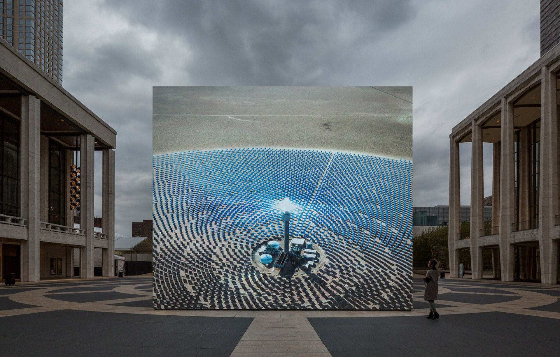 The work, Solar Reserve (Tonopah, Nevada) (2014), was installed outside Lincoln Centre in New York last year, and will be shown at Art Basel next week in its Unlimited section. It is a simulated landscape showing computer-generated images of the tower at a solar thermal power plant in Nevada. Every hour, the view of the tower shifts from overhead to ground level, mimicking the movement of 10,000 mirrors that surround the tower and track the orbits of the sun and the moon.