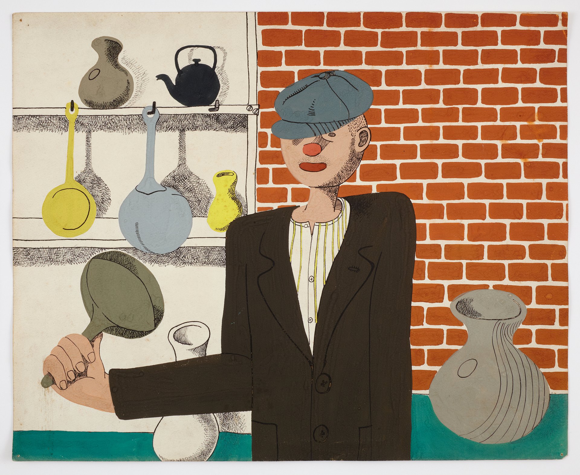 The unique works on paper—conceived as illustrations for a children’s book based on the nursery rhyme Tinker, Tailor, Soldier, Sailor—had been tucked away in an envelope for 50 years. Hamilton made them when he was in his 20s and living with his parents in North London. He then offered them to his girlfriend Terry O’Reilly to give to her landlords in lieu of rent when both were short on cash. (O’Reilly met Hamilton in 1944 and later became his wife.)