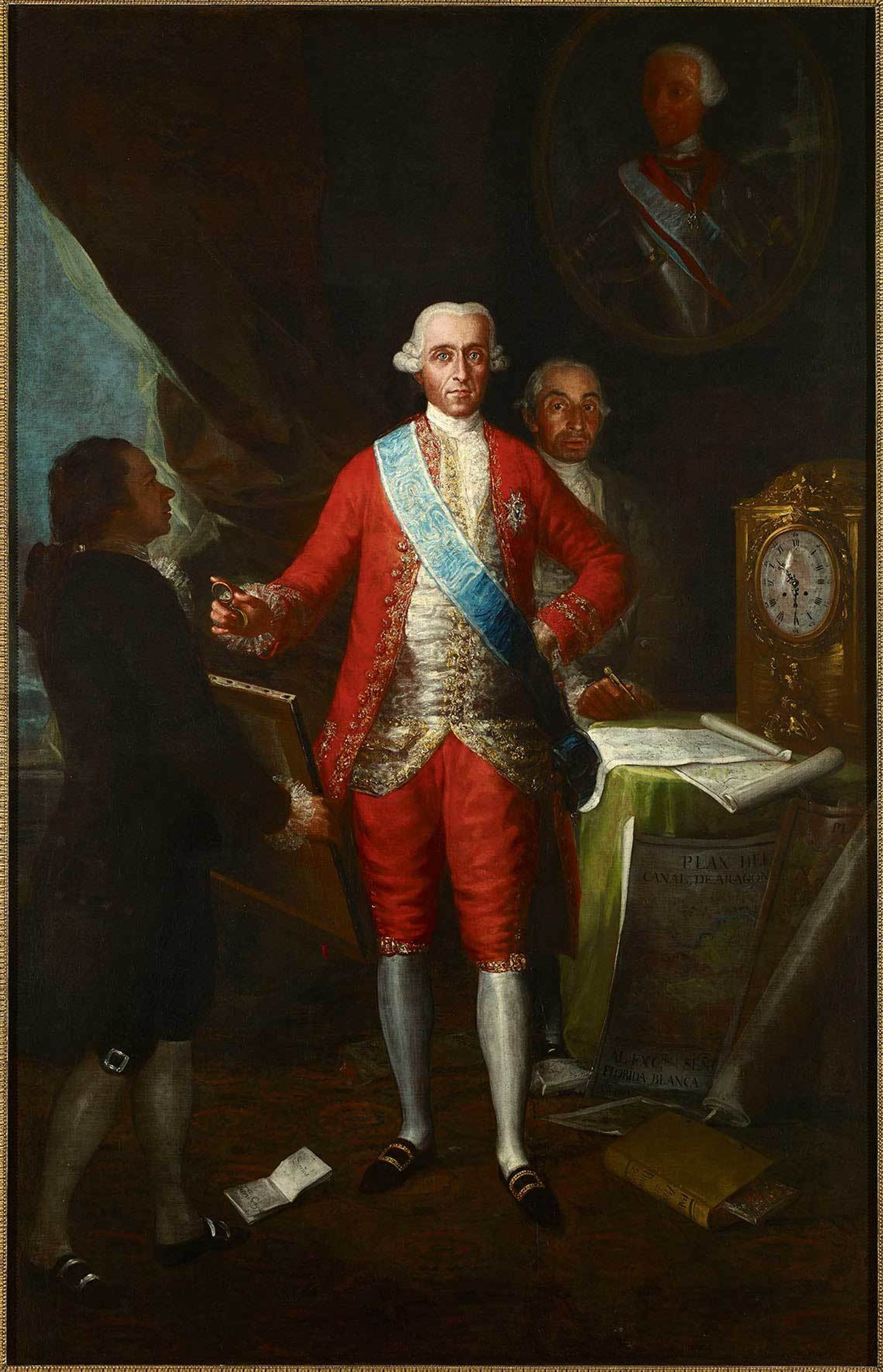 Goya’s command of the hand is apparent from the very first major commission on display: his 1783 depiction of The Count of Floridablanca, the second most powerful man in Spain. Though the portrait is often derided for the allegedly vacant, porcelain stare of Goya’s distinguished subject (whose garish silken attire floods the centre of the canvas with outrageous red), there is real drama in the hands of the painting’s players. Behind the central figure, the fist of the Count’s military engineer, Julián Sánchez Bort, crouches on a table like a pinless grenade, his fingers clenched tight around a draughtsman’s compass. The compass’s spin has been interrupted by the sudden entrance into the room of Goya himself, whom we see in shadowy profile to the left, his own hands gripping the sides of the very portrait at which we’re staring, establishing a meta-narrative of painting-within-painting that he pinched from Diego Velázquez’s Las Meninas (1656). But what masterfully brings together Goya’s composition is the right hand of the Count himself, which cradles a dainty pair of gold-rimmed spectacles. By gently extending an imperious index finger to the artist’s face, the Count suspends the forward momentum of the impatient young portraitist, eager to show his work. Like a conductor holding back the blare of an orchestra with a slender baton, the Count’s permanently poised finger creates the perpetual instant and space from which he will stare out at us eternally.