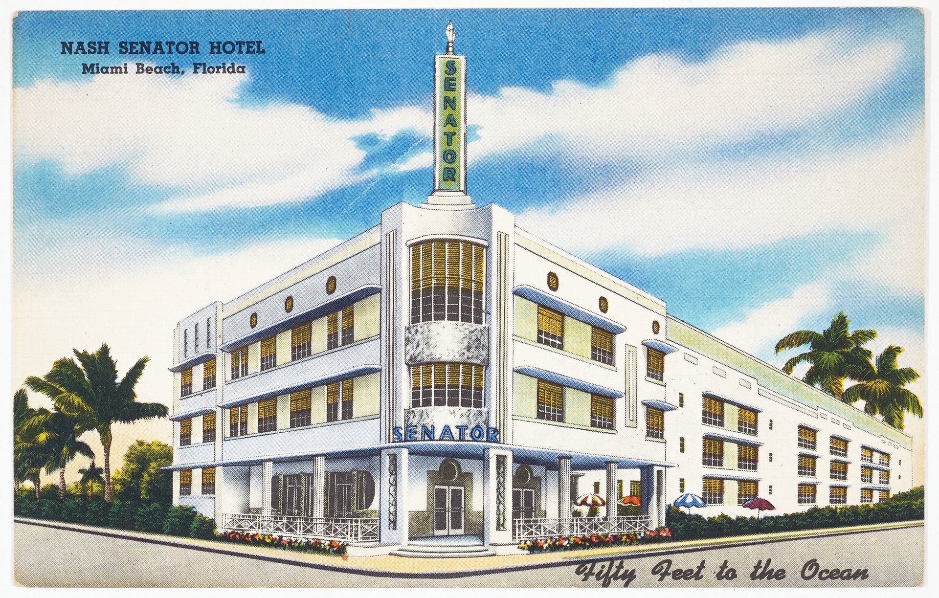 Lawrence Murray Dixon was another busy architect in 1930s and 1940s Miami Beach, designing the Raleigh Hotel and the Victor Hotel, as well as the more modest Nash Senator, in the Art Deco style.