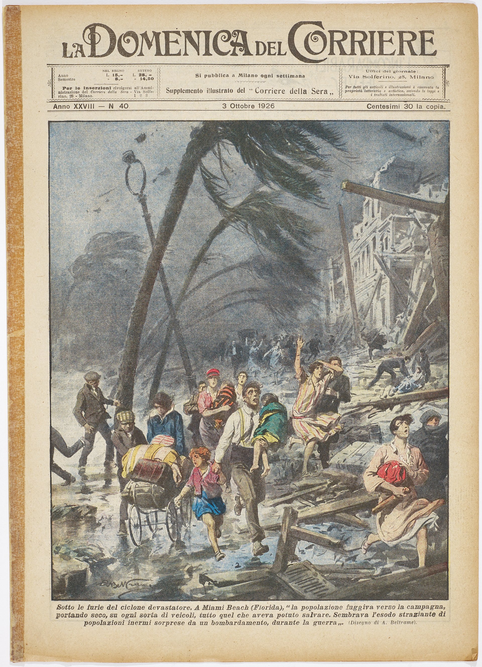 Italian media covered the devastating hurricane that struck Miami Beach on 18 September 1926. Heavy rains and 125mph winds reportedly killed 113 people. Officials did their best to minimise the bad publicity, but the city’s first boom ended abruptly. By 1933, however, despite the Great Depression, construction had surpassed even the previous peak levels of 1925.