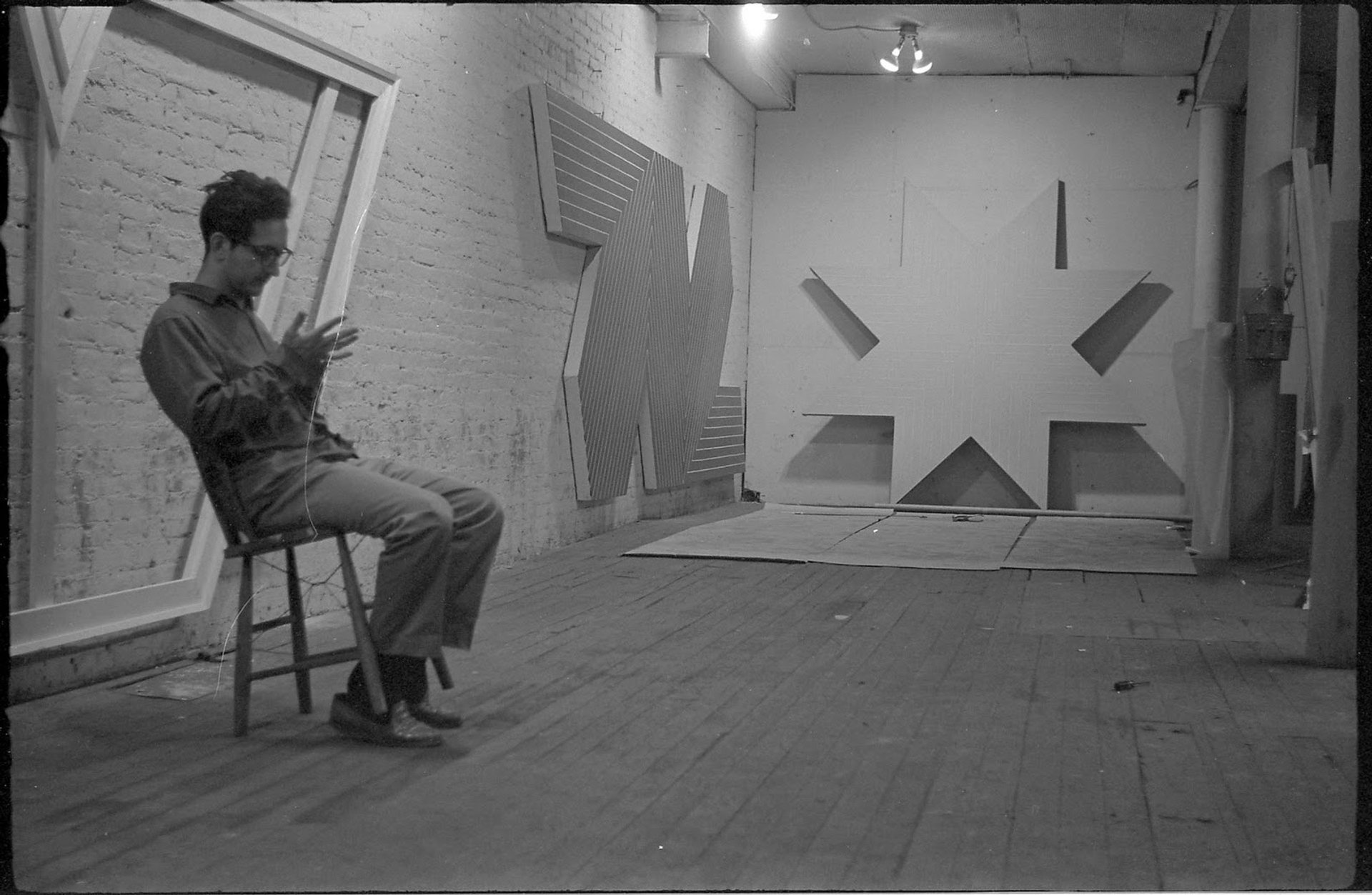 Even critics who reviled Stella elevated their rhetoric. In a 1964 New York Times review of Stella’s show at Leo Castelli gallery, Brian O’Doherty wrote that the paintings “announce that a new kind of human animal is around, a new response to living life—one that is anti-emotion, anti-human, anti-art (by trangressing its limits of expression or non-expression) and that is even anti-anti.”