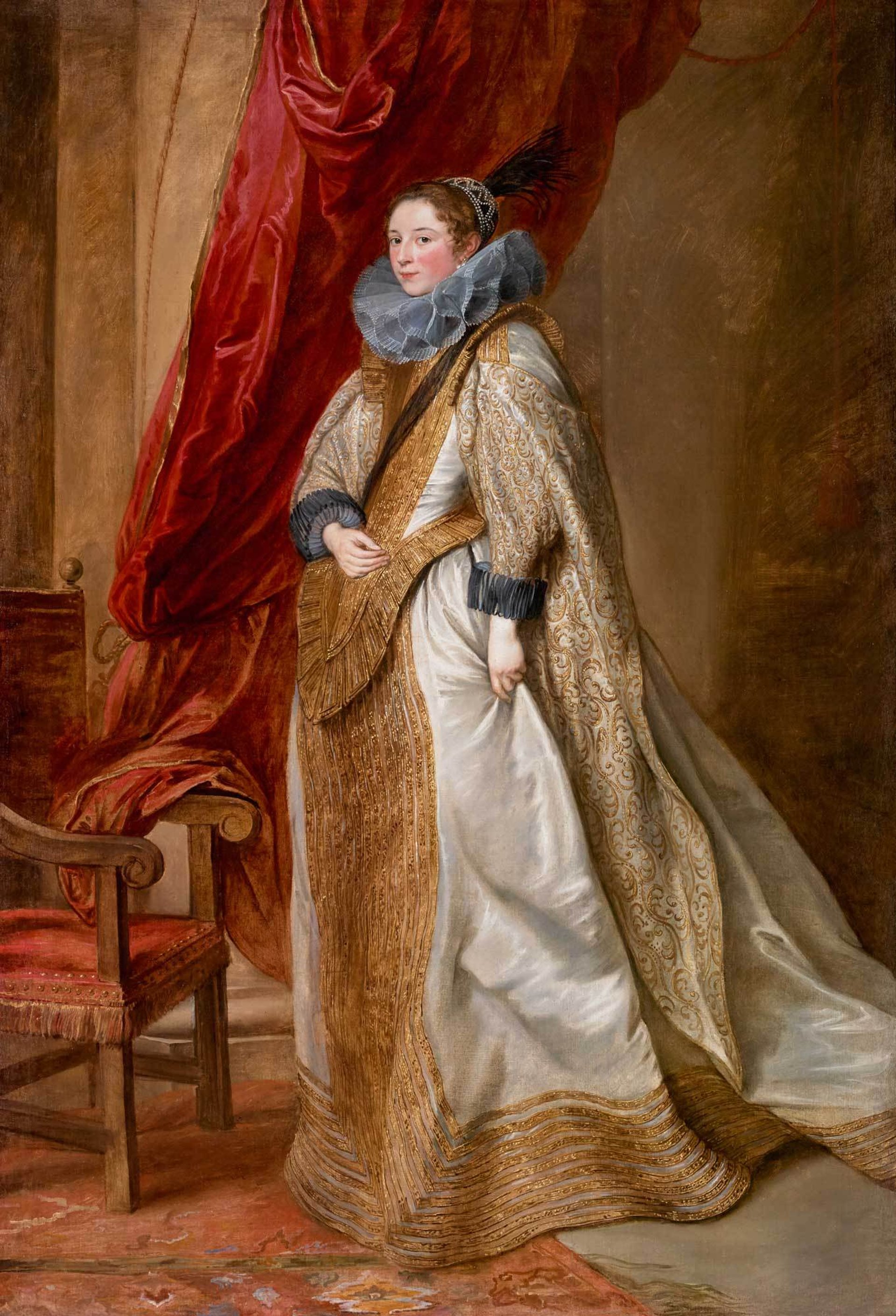 Portraiture, Van Dyck’s specialty once he moved to London in 1632, was generally regarded as a secondary artistic genre. Alsteens quotes a section of Karel Van Mander’s treatise of 1604 and his judgment that portraiture was “this sideroad of art” to which painters turned “because of the allure of profit, or for their survival,” thereby forsaking “to seek or follow the road of history and figures that leads to the highest perfection.” By the metaphor “road of history,” Van Mander means scenes from ancient texts, Classical mythology, the Bible and allegory. The goal of portraiture was to produce an identifiable image of a sitter and his or her status in society and to extol his or her qualities through the use of often transparent symbols. They are solo performances, not symphonies. At best, they informed the viewer of someone’s appearance as it was enhanced with cosmetic accessories, notably female clothing, which cost a great deal more than the painting being produced. Perhaps their profound superficiality explains their appeal to Golden Age collectors.