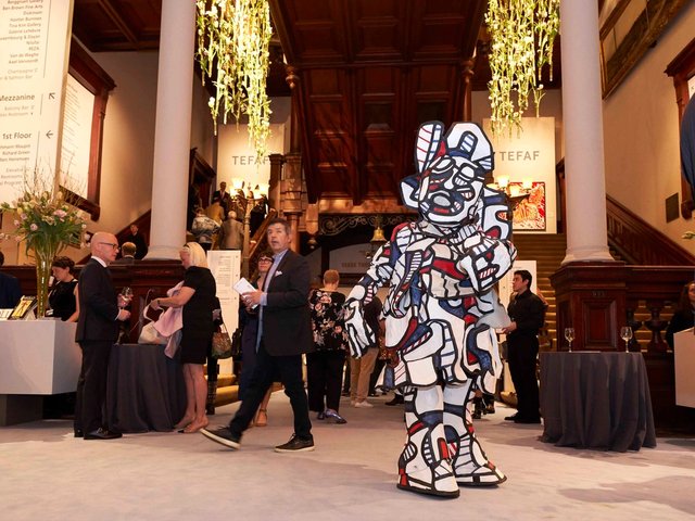 Collectors were out in force at both fairs. At Frieze Masters, Mnuchin Gallery sold Sean Scully’s Gate (1997) and Bridget Riley’s Delos (1983), at the VIP opening, each priced between $1m and $1.5m. Hauser & Wirth sold a small Alexander Calder stabile (a stationary sculpture) for $600,000 and a much-talked-about decomposing cheese painting by Dieter Roth for more than $500,000. Marlborough Fine Art sold around £1m worth of work by Paula Rego.
