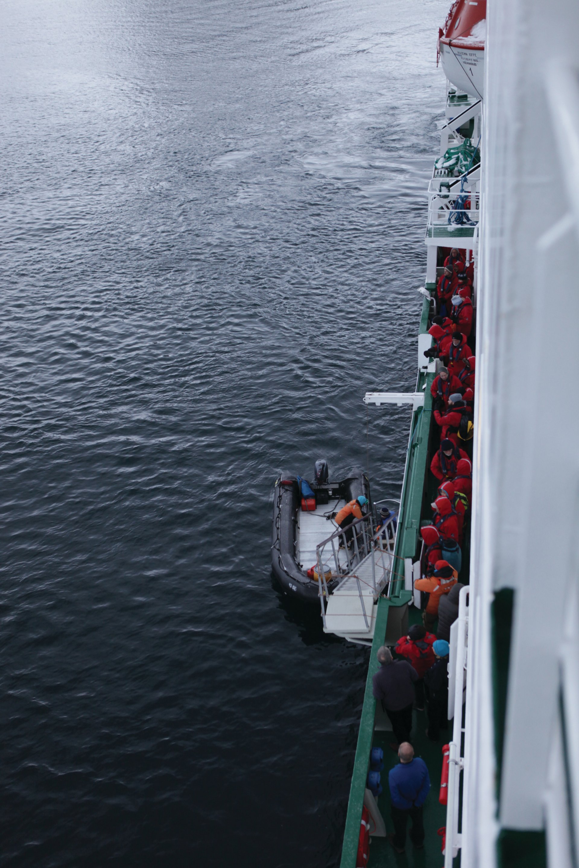 This is not an actual ‘icebreaker’, rather disappointing, but ‘ice strengthened vessel.’ He is currently publishing new exceptional quality platinum prints of the classic early photographs of the Antarctic and showed me framed examples in the library, including Captain Oates. “ I may be some time…” soon becomes the standard line onboard for anyone going outside. Flatteringly he is convinced I resemble Scott or rather John Mills playing him, perhaps less flattering. Drinks reception with splendid freeform speech by Alexander-the-Great, or Pon-Pon, how we are all about to enter the magical dimension, the last empty space of the imagination for mankind, “beautiful woman” his favourite whispered line. Mysterious officers in khaki uniforms joined us for evening, maybe Governor of Tierra del Fuego, Naval top brass possibly, nobody knew.