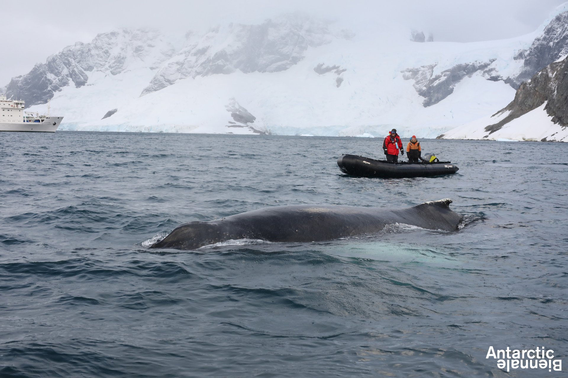 Out in our Zods to look for whales and they were everywhere, right next to us, some ‘logging’ when they sleep on the surface, as the wonderful penguins go ‘dolphining’ flying past us. The penguins zooming through sea, arcing up in whole shoal whilst group of whales like Nuclear cones rising black to the surface; three sorts of submarines, fuelled by nuclear, diesel and krill. Ah, their joyous spray in air like so many mobile versions of Geneva’s famous fountain, we were so close actually doused by their juices, only water I trust not some Heathcote ‘money shot’. Their misty spray like old fashioned musket grapeshot clouds in air or Cyprian Gaillard explosion, a whole sea of them at same time looks like a Napoleonic battlefield re-enactment, small puffs of smoke drifting everywhere. And then a huge, ancient head covered with whiskers like barnacles rears up right next to us, our guide never seen any that so close, amazing as they circle our rubber dinghies, could touch the black glossy slime if my arm stretched just a little further. Utterly extraordinary. Also bloody cold.