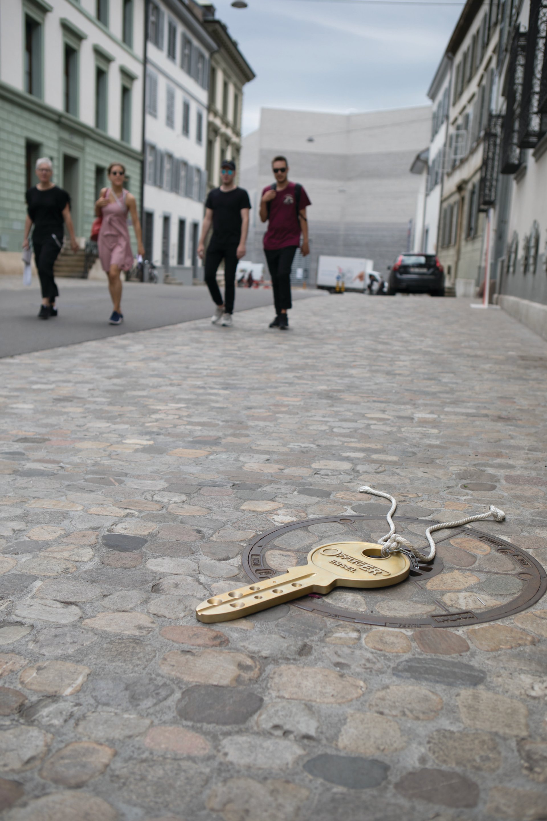 “I’ve been a big fan of Amanda Ross-Ho’s work for a long time. She makes large-scale sculptural interpretations of everyday objects, like gloves and trousers. In this vein, she’s made a keychain based on her own Carabiner keychain and a bunch of keys that seem to have fallen off and are lost throughout the streets of Basel. They’re large—maybe 60cm long. You might find one down by the river, up the stairway on the other side of the road, in a private garden. We partnered with people from the Parcours area and asked if they would give the artist a copy of their key. It makes a nice meta-portrait of the local community.”
