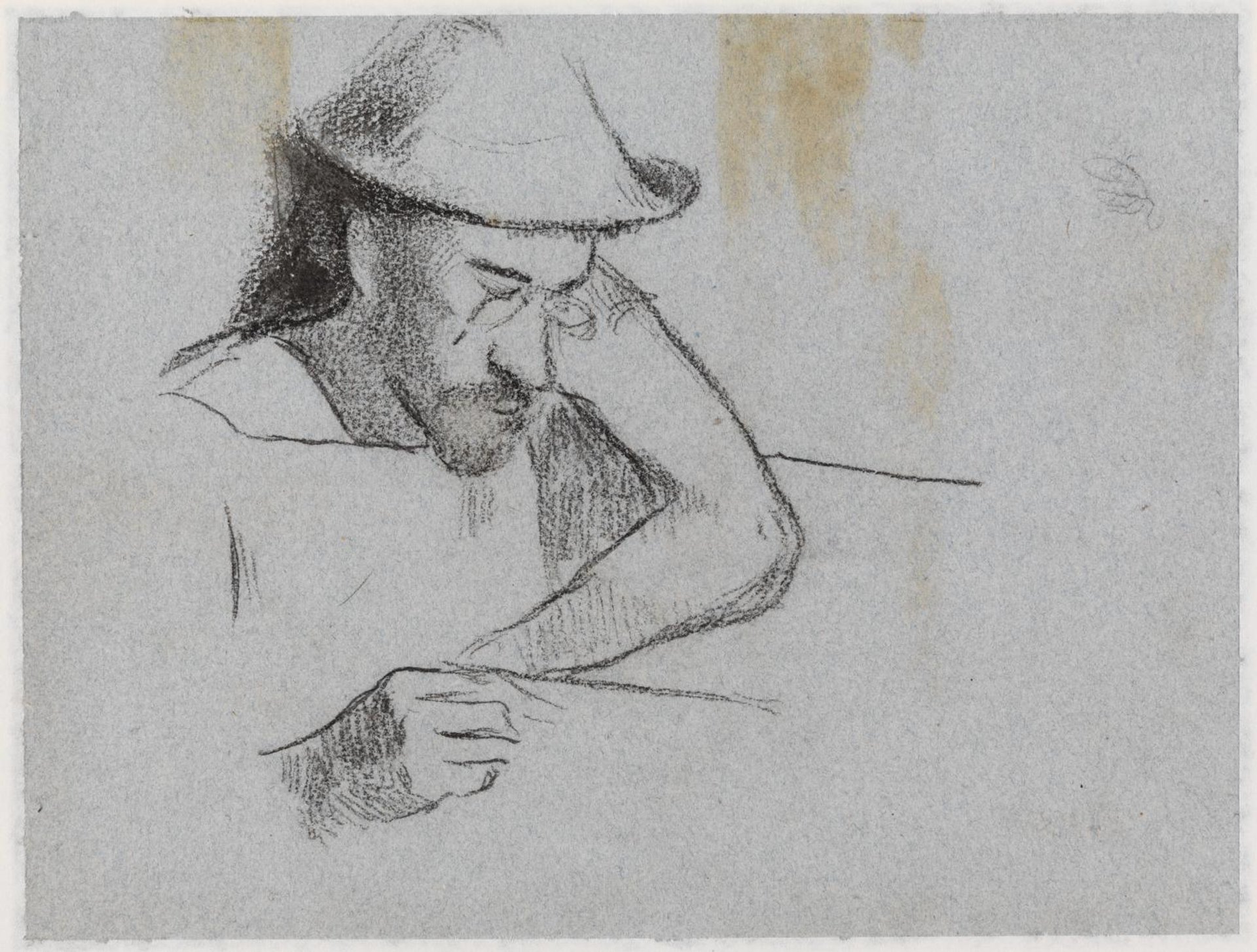 One side of the paper is a watercolour showing a tree trunk, possibly a preparatory work for a detail in a Martinique oil painting that was never completed. The other side is a pencil sketch of a man’s head. The Tate’s website suggests that it might depict Gauguin himself, but it does not appear to show his facial features, and the Amsterdam exhibition describes it as portraying his artist friend Charles Laval.