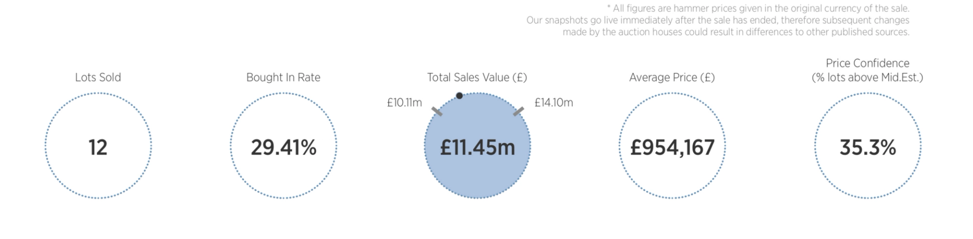 But arguably the liveliest interest was for Francis Picabia's Atrata (1929), a large-scale oil and pencil at auction for the first time since 1974, whose subject—a saucer-eyed woman—basked in the attention of seven bidders, including some from Asia. With an estimate of £1.5m-£2m, it sold for £3.1m (£3.7m with fees), a record for a work from Picabia’s Transparencies series from the 1920s and 30s.