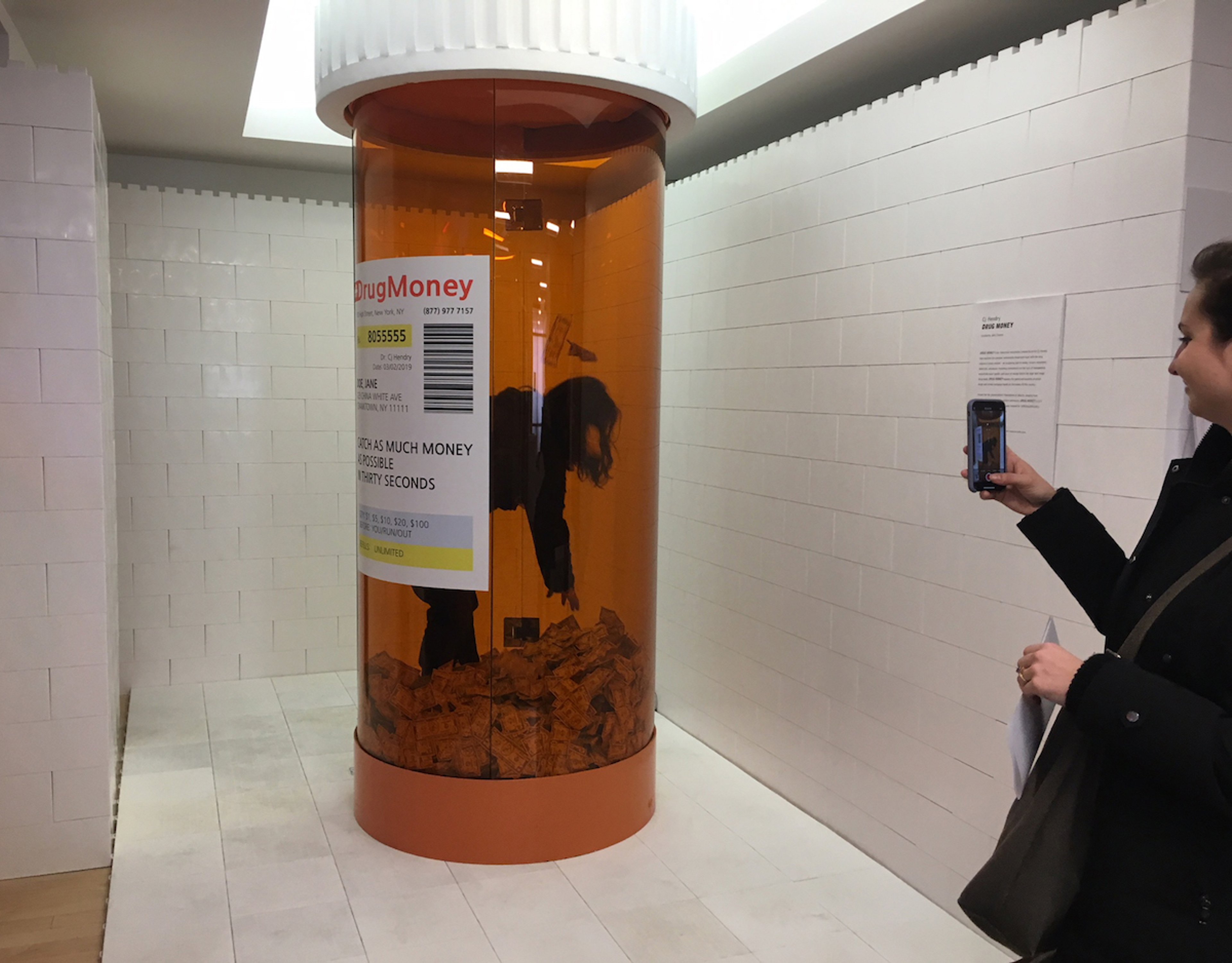 Reflecting the speed and scale of the opioid crisis in the US, this dystopian money booth invites visitors to step inside and try to grab as many banknotes as possible within 30 seconds. The Brooklyn-based Australian artist, best-known for works of a lighter vein such as photorealistic fashion drawings, is pals with Joss Sackler, the wife of the Oxycontin heir David Sackler. Ahead of debuting the steel and glass work at the fair, the artist wrote that she spoke to Sackler and appreciated her perspective on the recent controversies around the Sackler’s funding of cultural institutions. Hendry hopes the piece, priced at $120,000, will bring about more conversations around the legal and illegal market for addictive pharmaceuticals. CJ Hendry: Drug Money, curated by John Zionos.