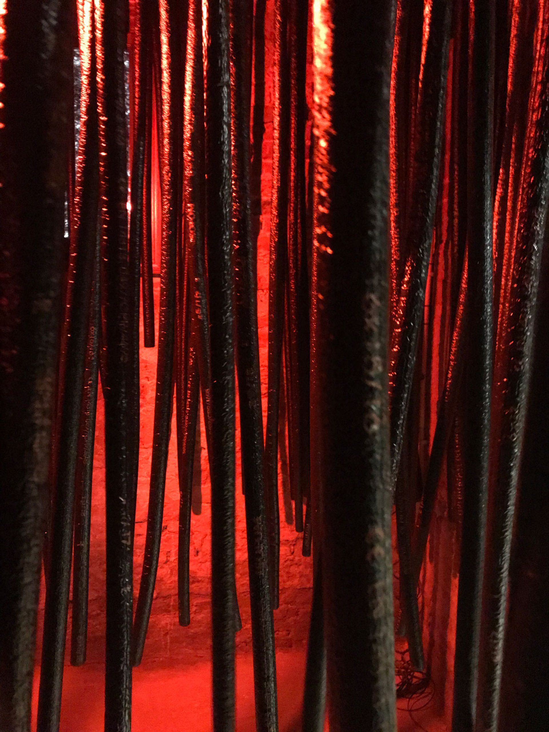 The theme of the Zimbabwean Pavilion is the corrosion of family life as economic and political pressures force a growing number of people to live estranged lives abroad. Dominating the space are show-stopping paintings by UK-based Kudzanai-Violet Hwami. At 26, Hwami is one of the youngest artists in the Biennale but is already a rising star (she will have her first institutional show at London’s Gasworks this autumn). Her work reflects the challenges of diasporic life and the loneliness that accompanies the separation from the native land. Another artist, Georgina Maxim uses handed-down items of clothing to pay tribute to the role that relatives can play in the fortunes of an individual.