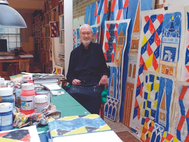 The process is, basically, I go outside and do a scribble. It feels as though I’m drawing for five minutes, but if I look at my watch, I find that I’ve been out for 35 or 45 minutes. And then what happens is that I look at the drawing, and I remember what it was that I reacted to. I haven’t got much of a visual memory, I realise, with the passage of time, and as I’m coming up to 88, I think it’s likely that that is the case. I also think that’s one of the reasons why I find it so fascinating to record and to draw. If I’ve done a hundred drawings and been working on the thing for months, then as I stand in here [the studio], I begin to have specific memories of the relationships of the forms. And of course, it isn’t a question of recording, it’s a question of invention. The only reason that I look at things is to give more quality to the image I’m making.