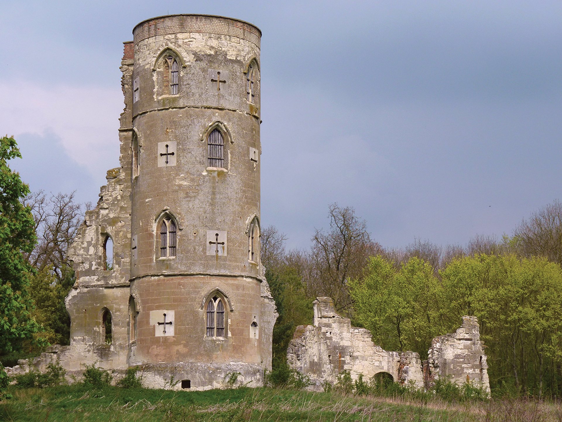 The Gothic Tower, designed to look like a picturesque medieval ruin and based on a 1749 sketch by the architect Sanderson Miller for his patron, Lord Hardwicke, the owner of Wimpole cmglee