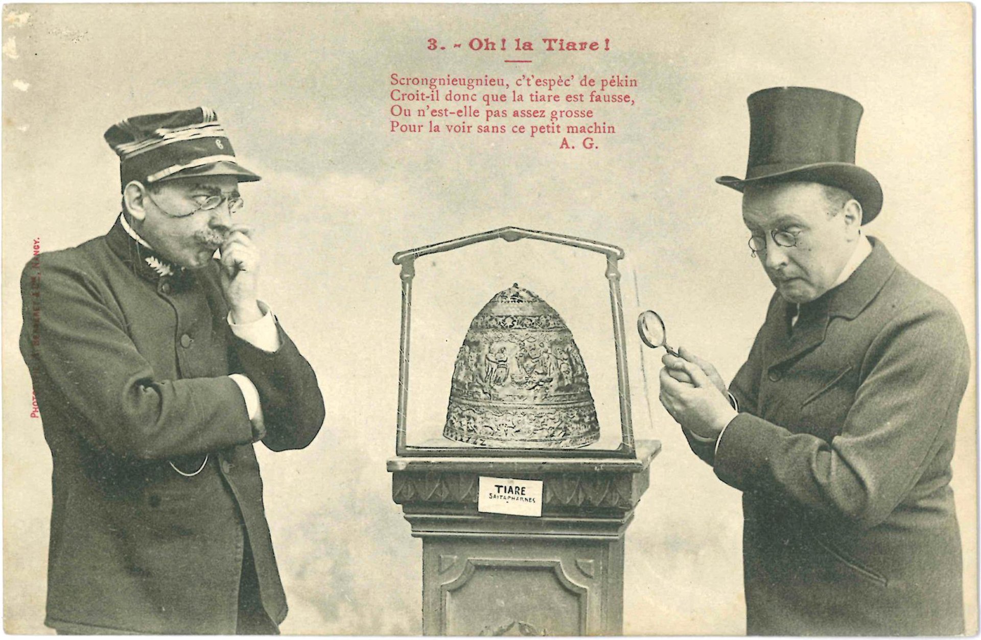 A satirical postcard of the counterfeit Saitaphernes crown, bought by the Louvre in the 19th century © Wellcome Collection