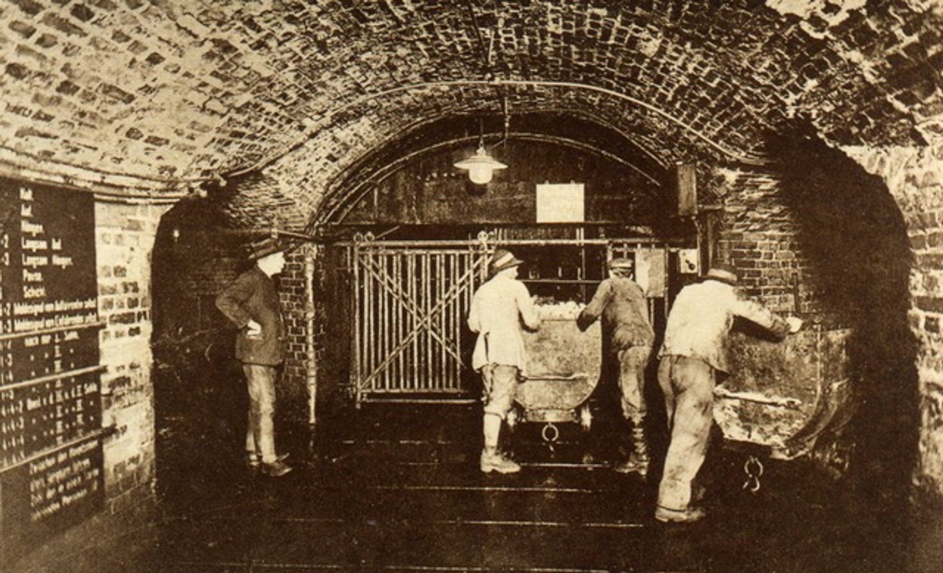 A postcard showing the Berlepsch mine at 406m depth, 2km from the art storage mine (1920s-30s) Courtesy Archiv Bergmannsverein, Stassfurt
