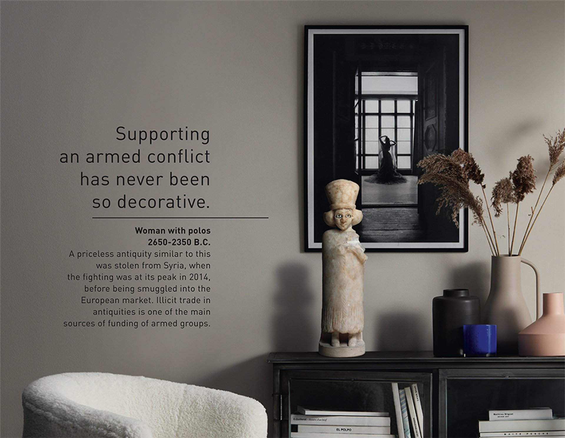 After the IADAA newsletter went out, Unesco changed the text of the ad depicting the Woman With Polos. Under the headline “Supporting an armed conflict has never been so decorative,” it had read: “This priceless antiquity was stolen from the National Museum of Aleppo when the fighting was at its peak in 2014, before being smuggled into the European market.” Now the underlying blurb says: “A priceless antiquity similar to this was stolen from Syria, when the fighting was at its peak in 2014, before being smuggled into the European market.”