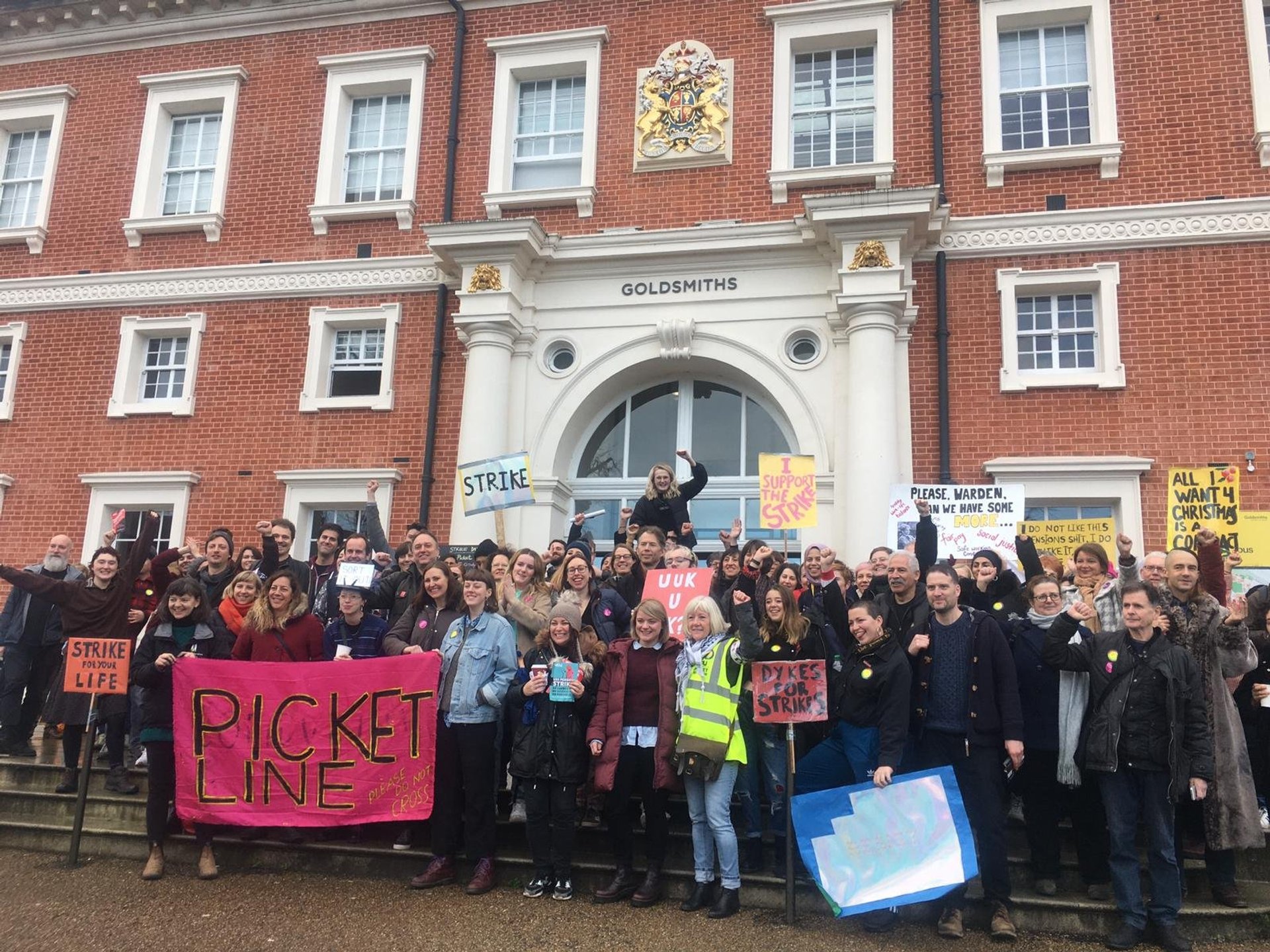 Goldsmiths staff and union members picketing against planned restructuring of the major UK art school Twitter / @Goldsmiths UCU