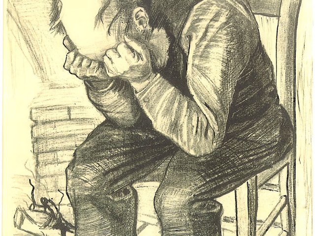 Van Gogh’s print of an elderly man with his head buried in his hands is very rare, with only seven examples surviving. On one of them, he added the inscription “At Eternity’s Gate”—suggesting that the sorrowful soul did not have long for this world. Vincent wrote the title in English because he was seeking work in London.