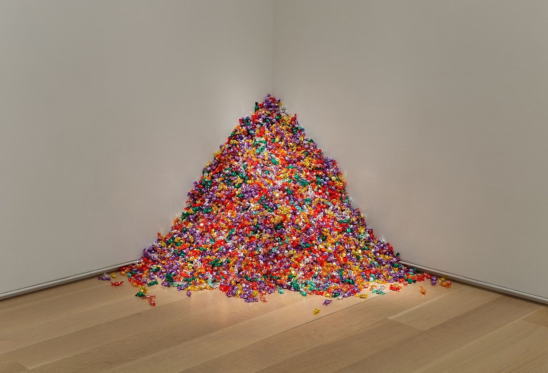 "I love his sensibility, the sense of sorrow. But conceptually, I'm really interested in those stacks of candy. He questions the notion of author and authorship. There's no signature, and he didn't make that piece. And it was a written agreement between Felix and the museum. So it's a piece of paper, basically, and a couple of sentences that describes the work and how to prepare the candies—he specified the wrapping paper of the candy and where to get it. And that's a such a radical idea from which to make art. I could totally relate to that. And then by offering it to people who can take these things. And then next morning, that's another pile of candy. The materiality of the work may be so ephemeral, but this is the ultimate eternal piece. I'm really drawn to his way of thinking."
