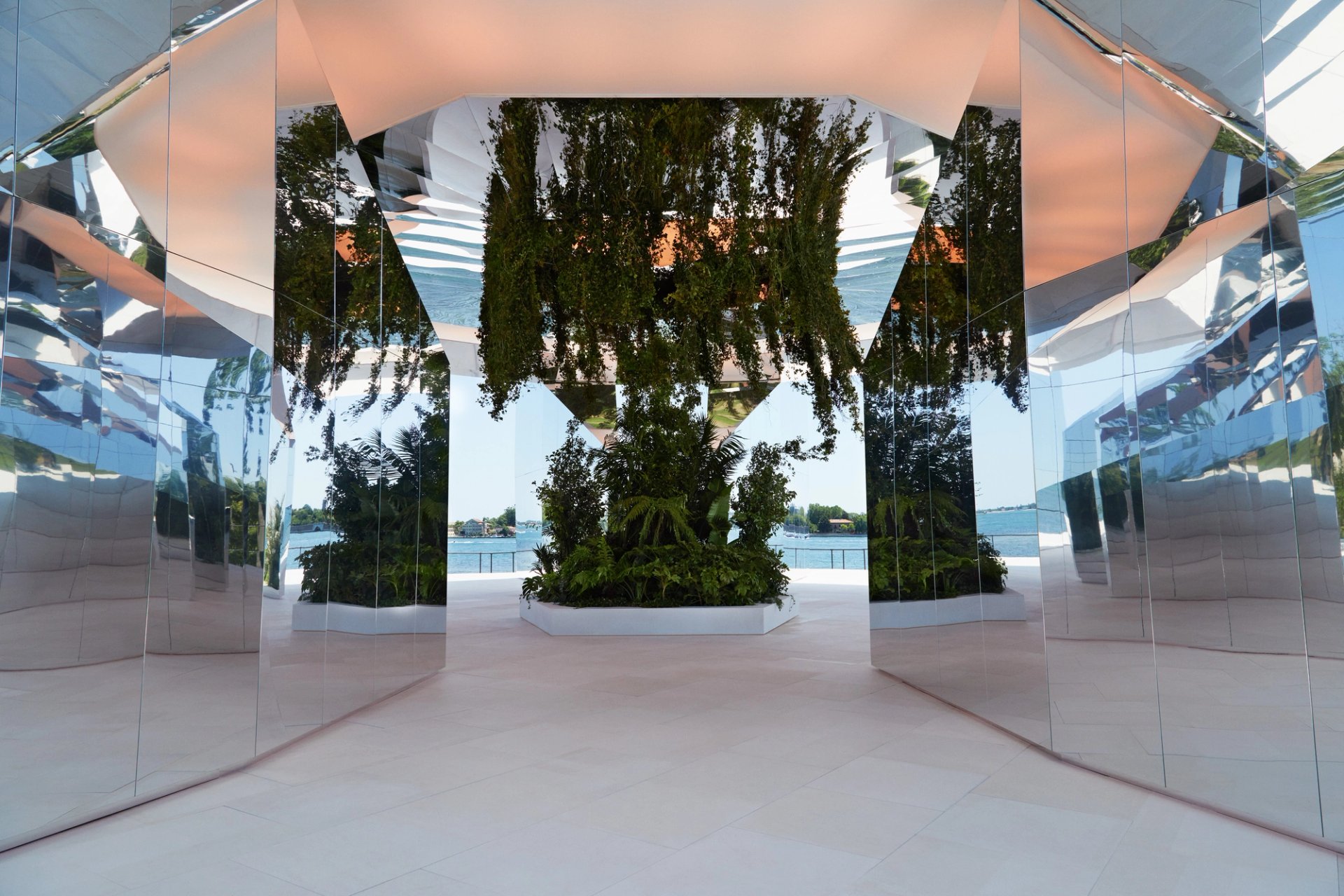 A video capturing Doug Aitken's mirrored structure Green Lens Courtesy of YSL