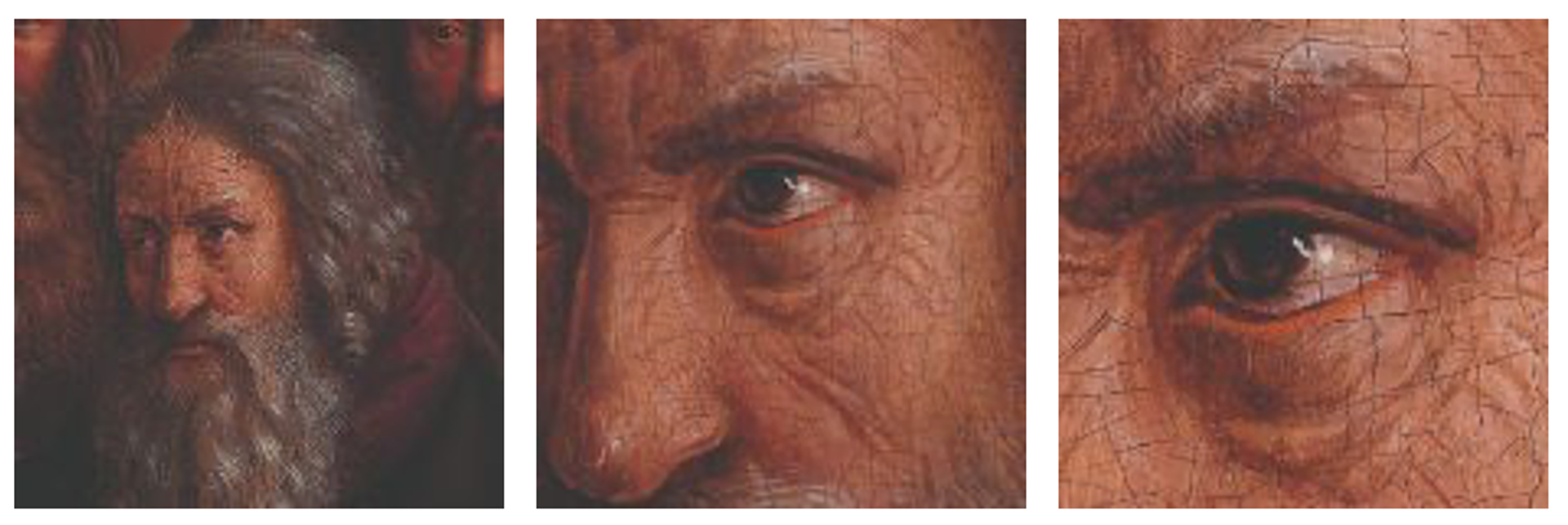 Head attributed to Jan van Eyck, head in close-up and a close-up of the eye. © Sint-Baafskathedraal Gent, www.artinflanders.be, foto KIK-IRPA
