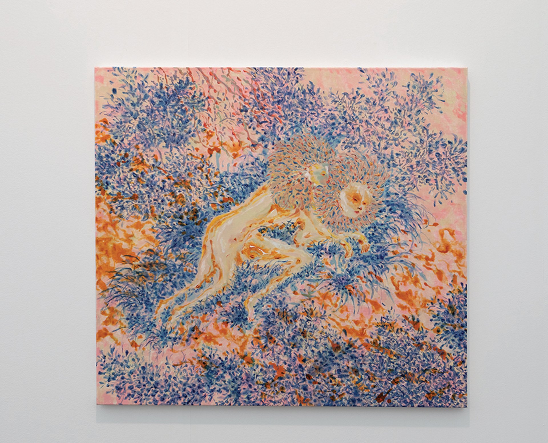 The Taiwanese painter Cian-Yu Bai had a strict childhood, studying until late at night and even on Saturdays. She eventually swerved her intended career as a teacher to become an artist, but still applies the same intensity and discipline to her work. Her almost calligraphic paintings depict calm, enveloping dream worlds, where you could perhaps turn into a magical creature like these lolling lions.