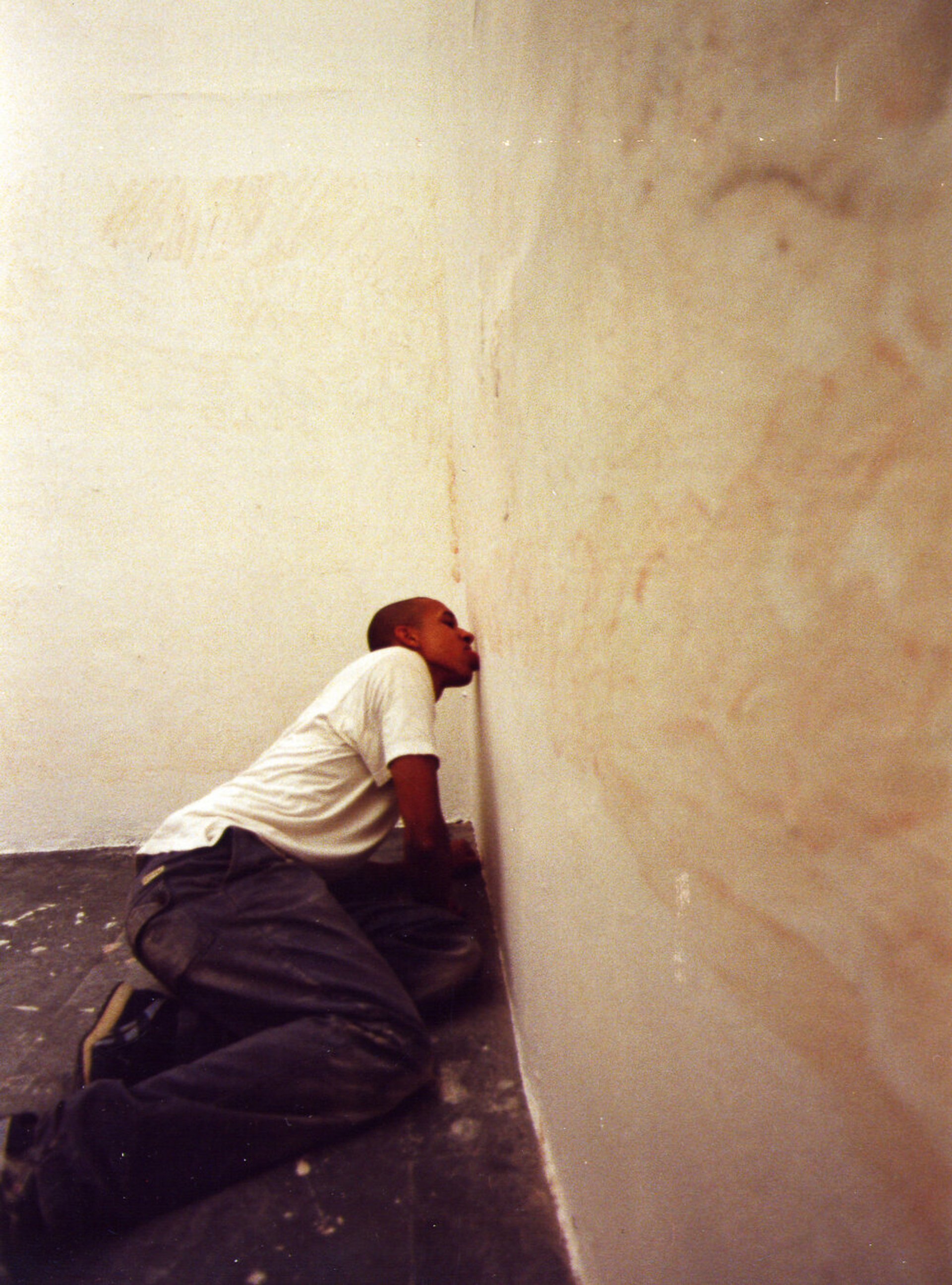 … his performance work Licked (2001), in which he licked the walls of a gallery covering it with his saliva and eventually, his own blood