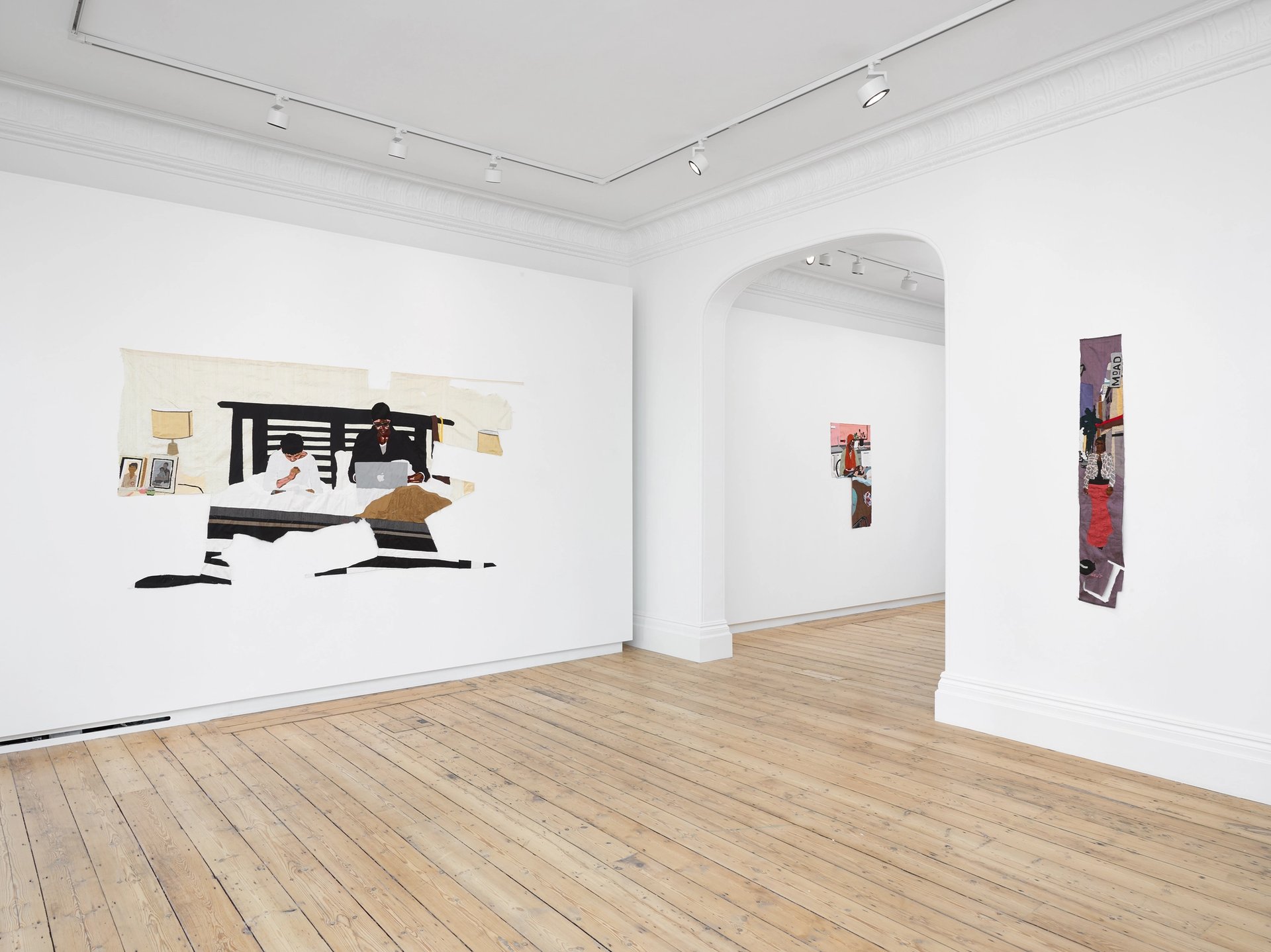 Installation view of Billie Zangewa: Flesh and Blood at Lehmann Maupin, Seoul. Courtesy the artist and Lehmann Maupin, New York, Hong Kong, Seoul, and London