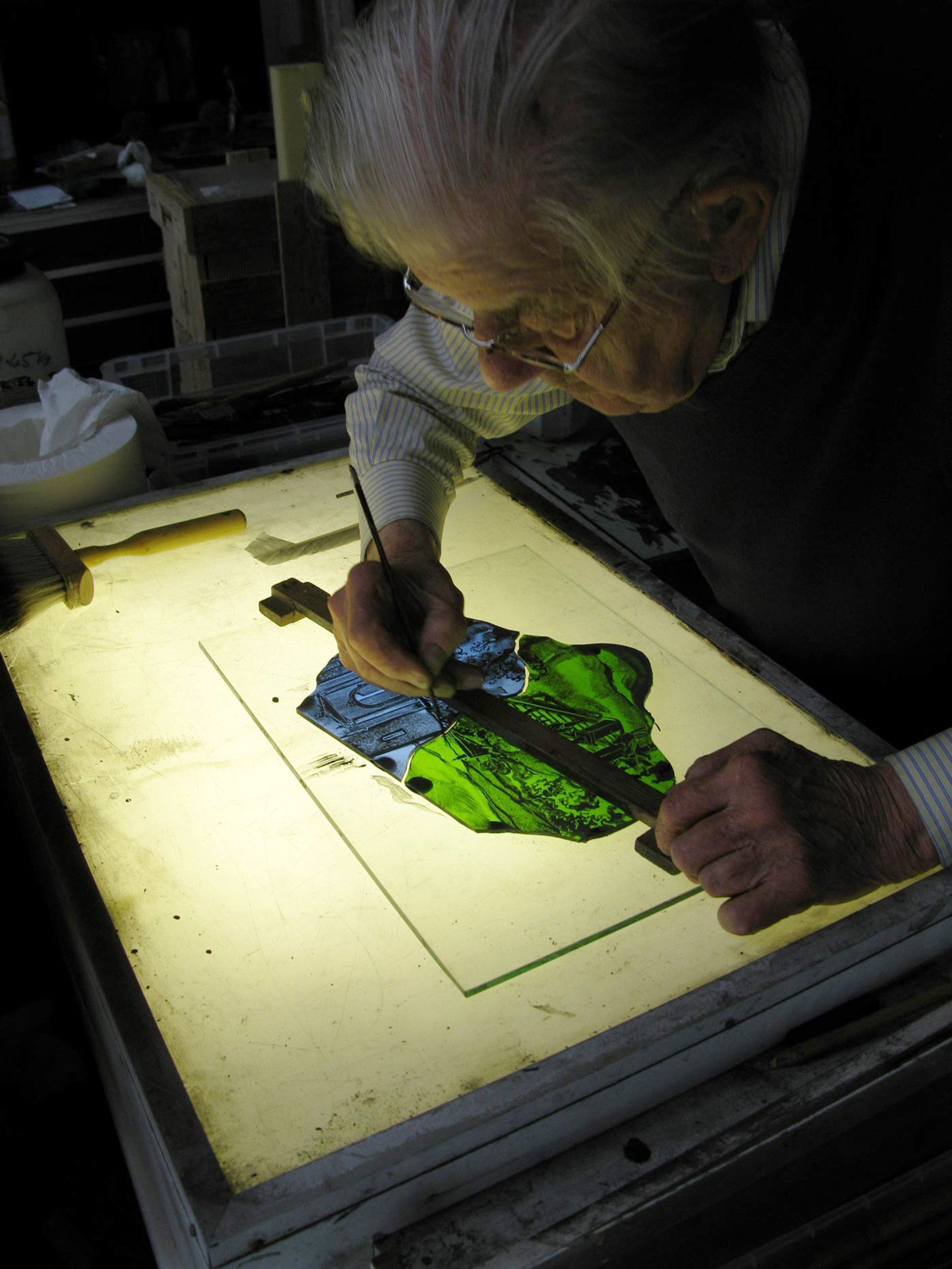A love of drawing: Reyntiens at work on a panel in his studio, 2011