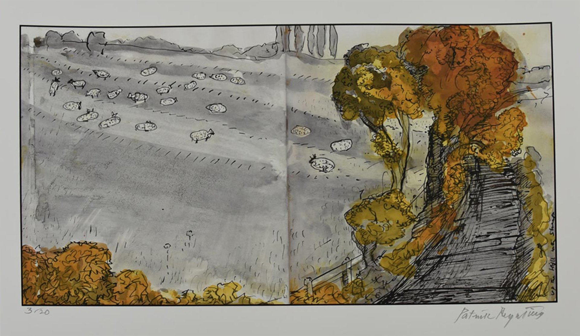 Country life: Patrick Reyntiens, print from a sketchbook of the early 2000s Courtesy of Reyntiens Trust