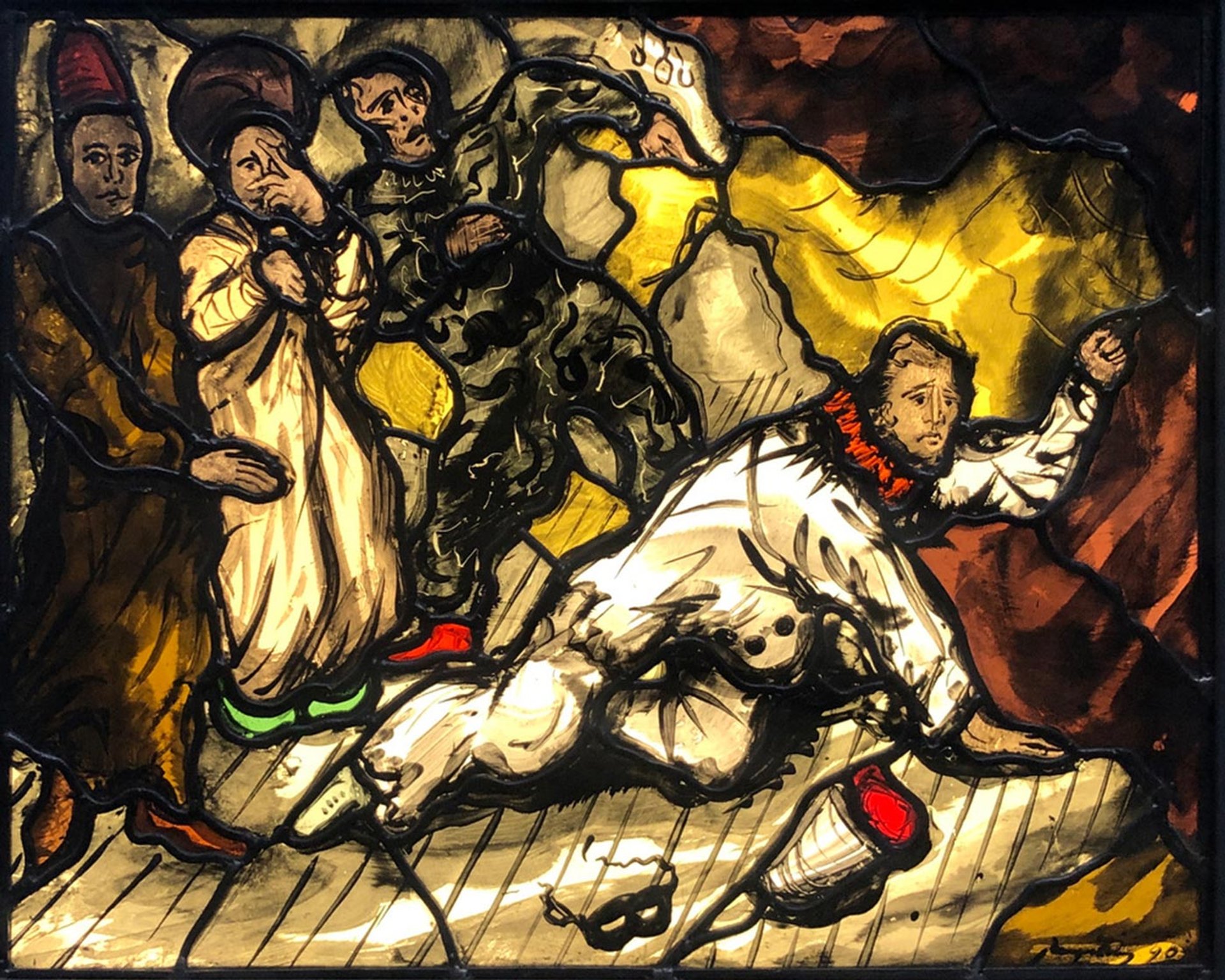 A passionate empathy for the artistic process: Patrick Reyntiens, Death of Orpheus (stained glass panel, 91cm x 71.1cm), 1984 Courtesy of Reyntiens Trust