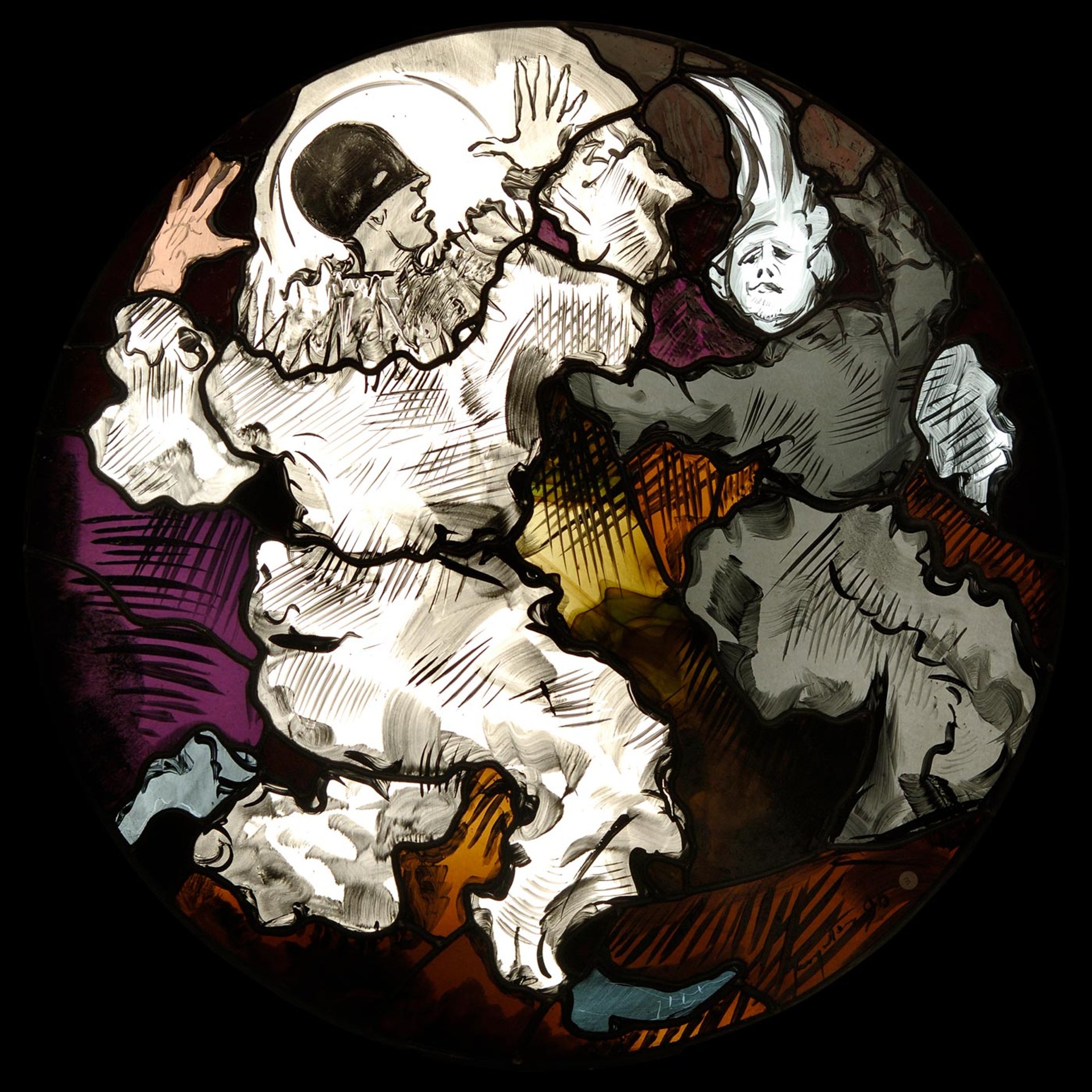 The eye of the craftsman and the eye of the artist: Patrick Reyntiens's panel An Actor Dies (stained glass, 42.5cm x 52.5cm), 1990 Courtesy of Reyntiens Trust
