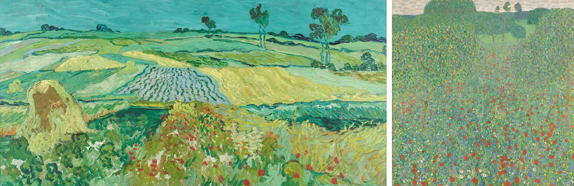 Van Gogh’s The Plain of Auvers (June 1890) and Gustav Klimt’s Blooming Poppies (1907) Credit: Belvedere, Vienna