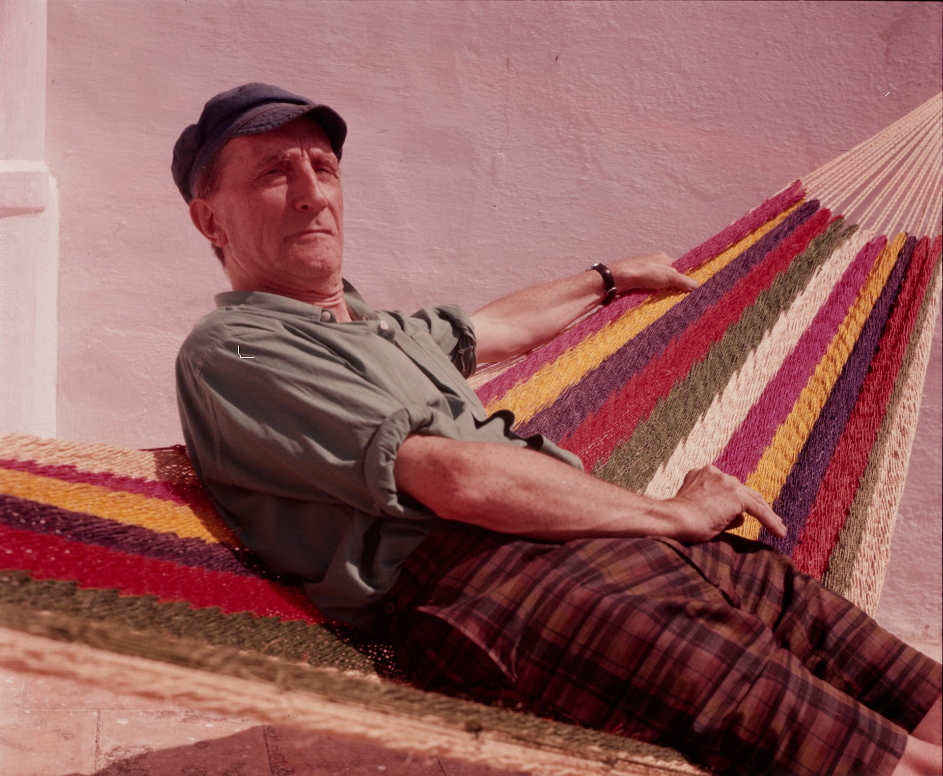 Picture by Man Ray of Marcel Duchamp in a hammock in his residency in Cadaquès, Spain, 1965. Man Ray Trust/Adagp, Paris © Centre Pompidou, Mnam-Cci, Paris.