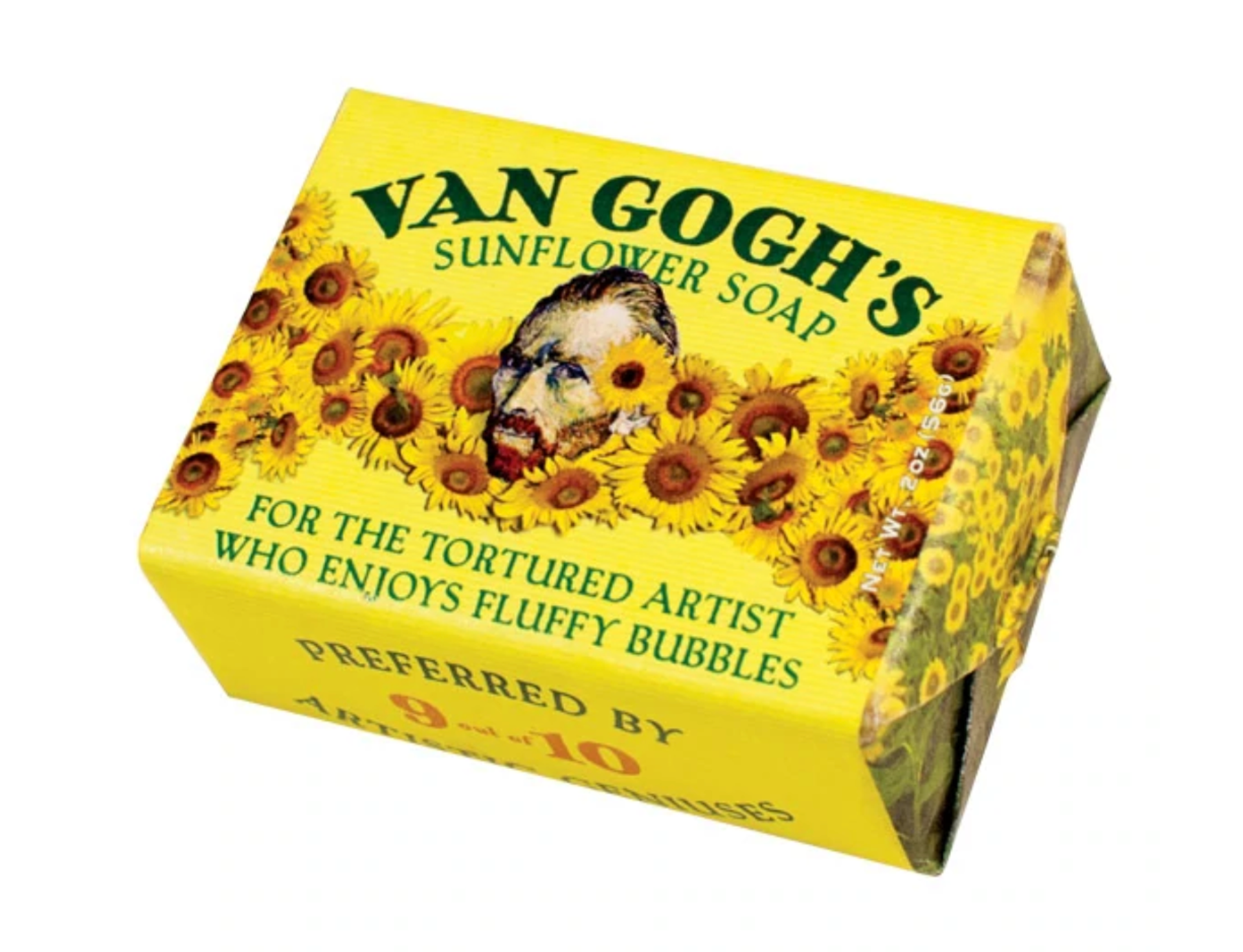 The packagng for "Van Gogh’s sunflower soap" says that it is "for the tortured artist who enjoys fluffy bubbles" Photo: The Unemployed Philosophers Guild