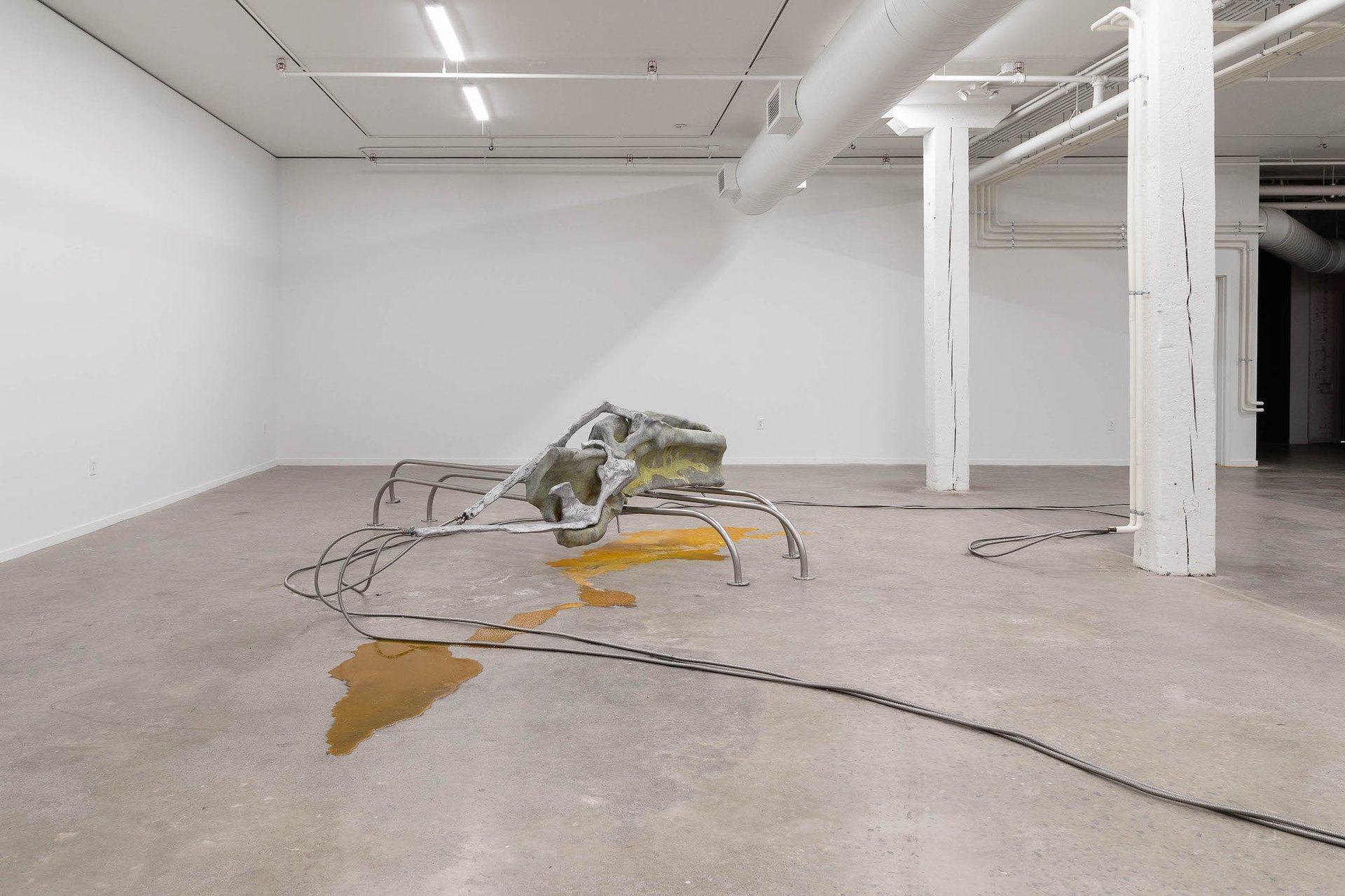 Futuristic sculptures by Isabelle Andriessen at Spaces embody these complications. Constructed of ceramics, steel, wax, silicone and plastics, they ooze a toxic aura. Nocturnals (2021), which resembles some cyborg critter, trails wires that cool its insides so it sweats brown liquid. In an abject performance, this pool gradually expands, suggesting decay. Andriessen’s sculptures reject traditional modes of care, accepting collapse as inevitable. In the context of this triennial, they question just how far healing can get us, especially in a gritty, poisoned world. They confront us with the ugly truth that not every wound can be mended.